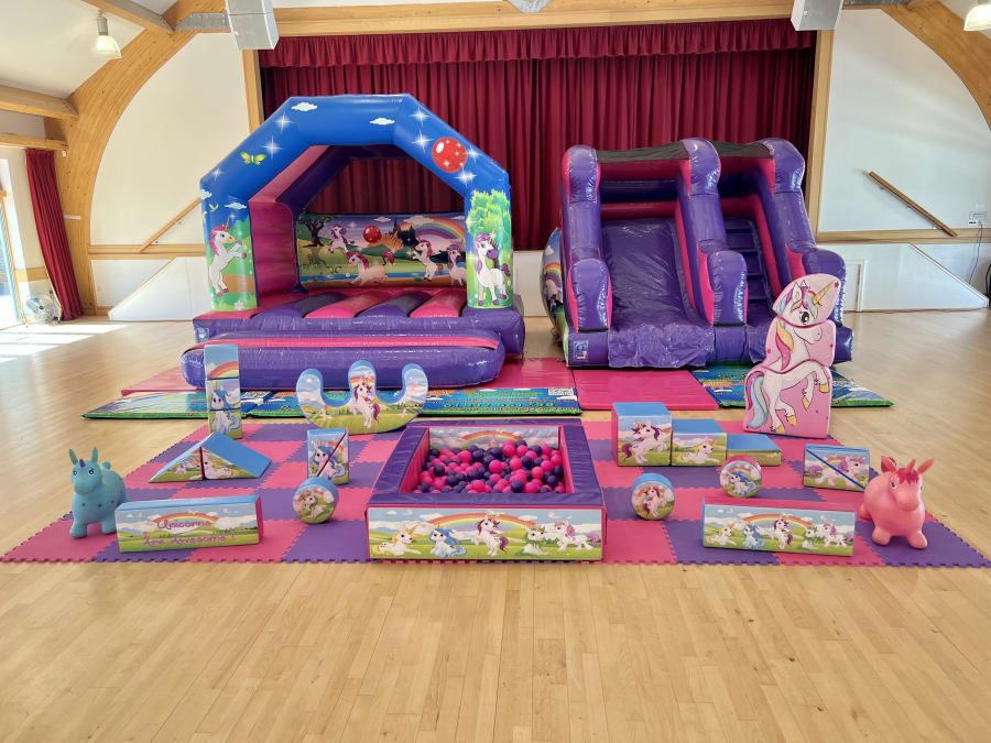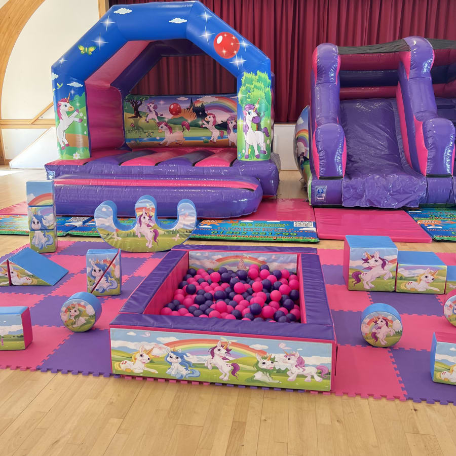Including our Unicorn Bouncy Castle, Unicorn themed 5ft Platform Slide and Unicorn Soft Play and Ball Pit set this package really does have it all and will provide the most ULTIMATE Unicorn experience.