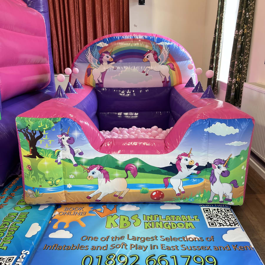 Book the Unicorn Bouncy Castle + Unicorn Air Juggler Ball Pit now by clicking the Green "Book Online" Button at the top of this page, alternatively you can call our office on 01892 661799 and we will be more than happy to help you