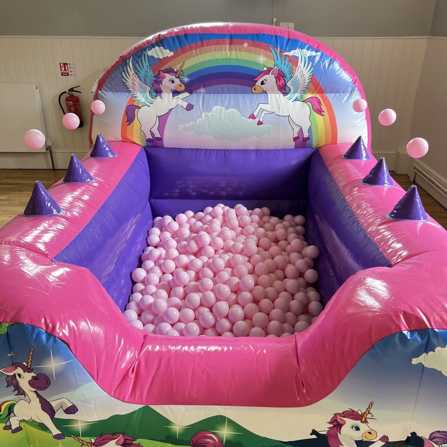 Make your child’s party truly magical with our Unicorn Bouncy Castle and Air Juggler Ball Pit Package