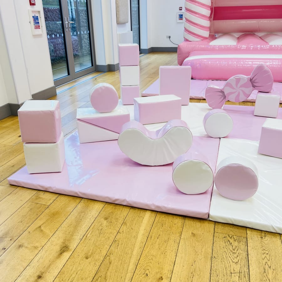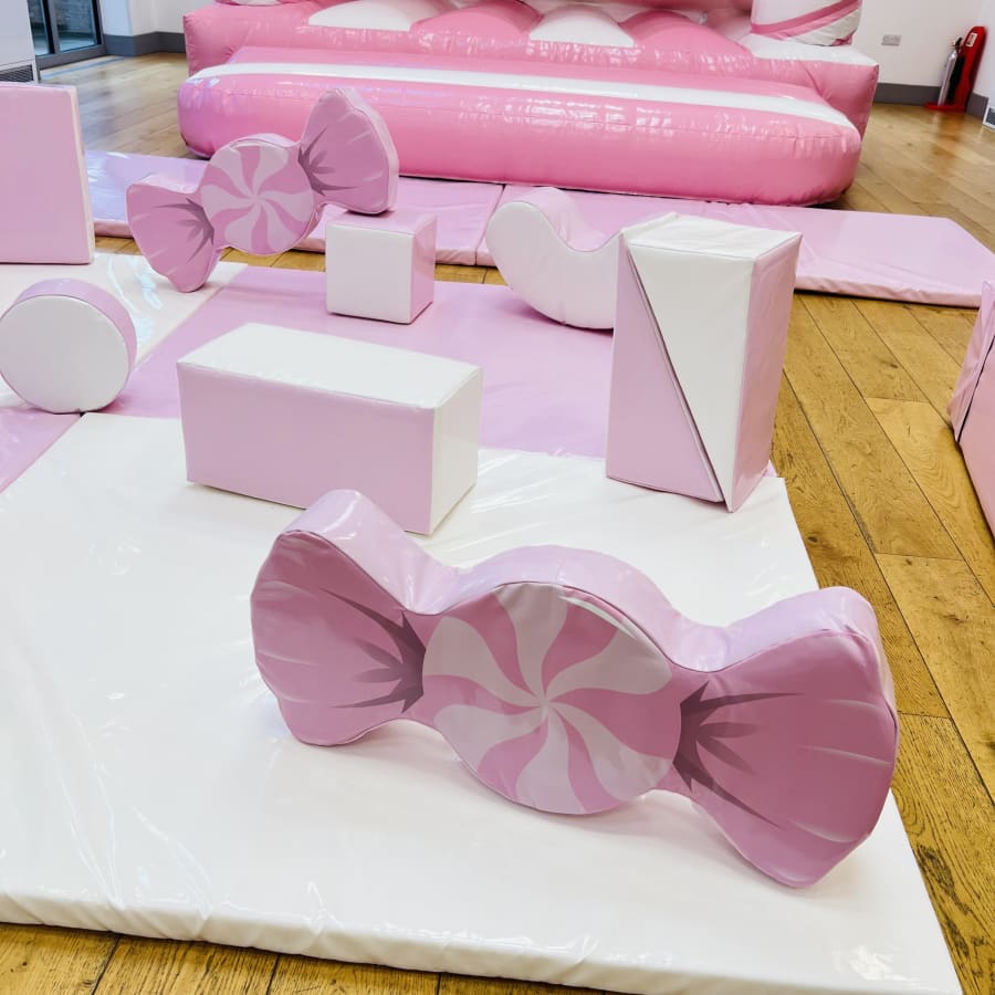 Planning a candy theme birthday party? Look no further! This stunning package blends a pink and white colour scheme with three delightful pink candy soft play shapes. This package is crafted for visual impact, safe play and memorable photo ops, ideal for 1st, 2nd or 3rd birthday parties.