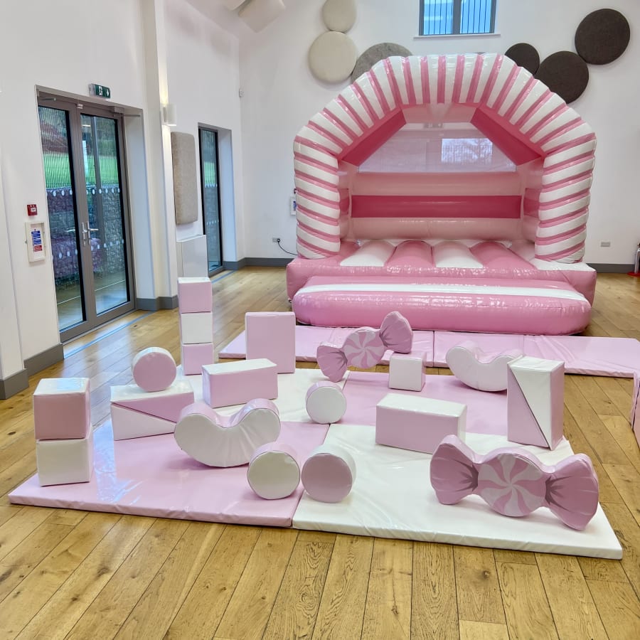 Pink / White Bouncy Castle and Candy Sweets Soft Play Package