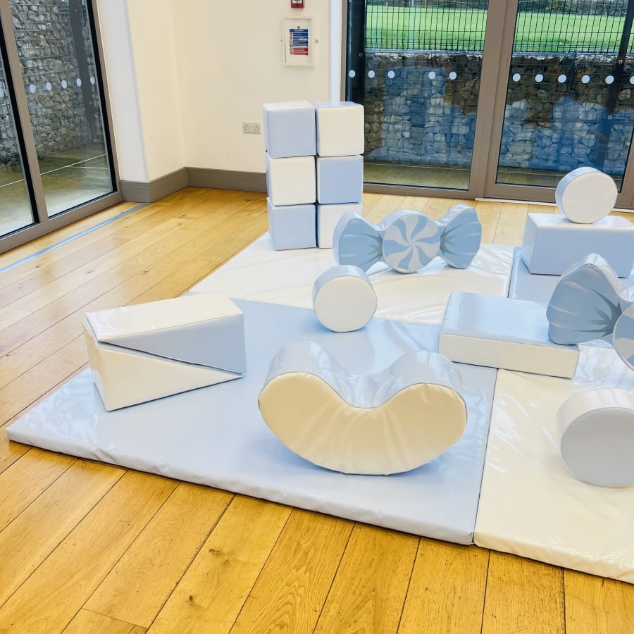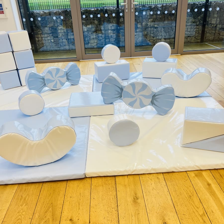 Delightful, cute and insta worthy. The Blue Candy Sweets Soft Play and Ball Pit Package is a pastel blue and white colour scheme dream, ideal for 1st, 2nd and 3rd birthday ideas.