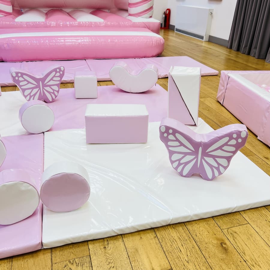 Pink and White Bouncy Castle and Butterflies Soft Play Package
