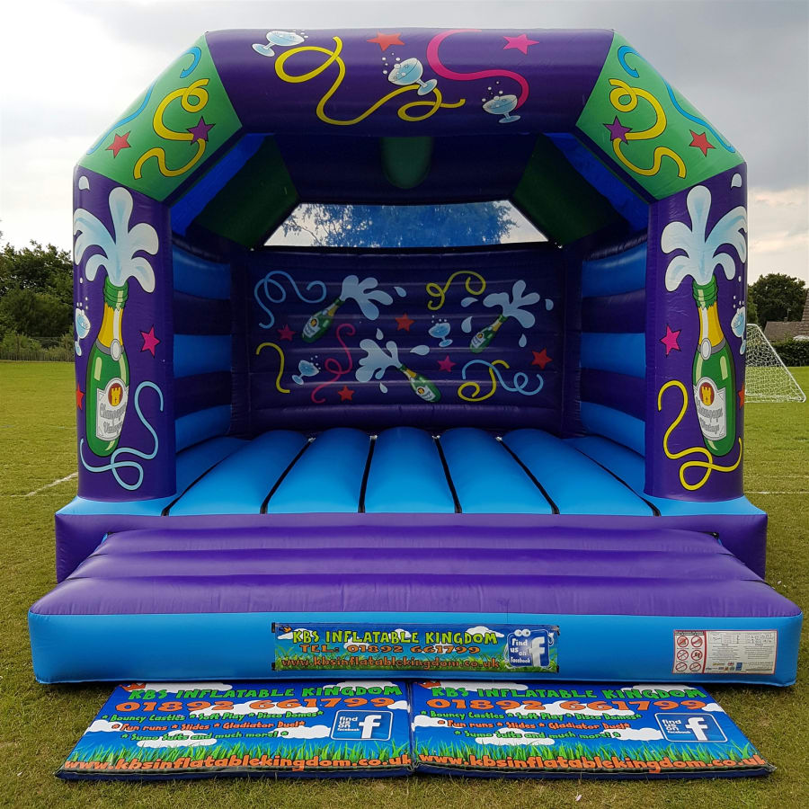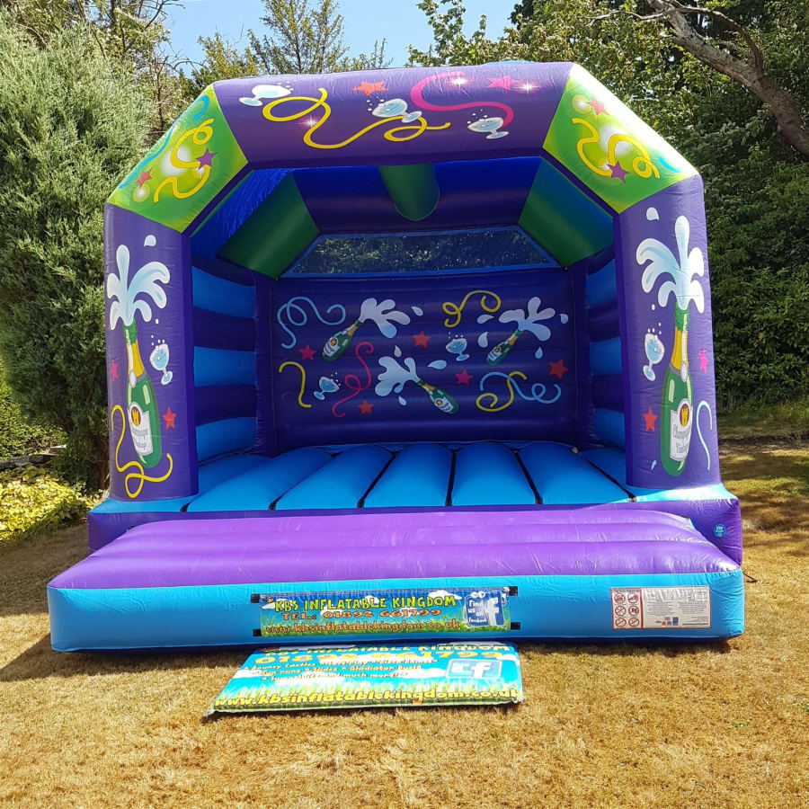 With its eye catching purple and light blue design and artwork including champagne bottles and streamers this Bouncy Castle just screams " Celebration! "