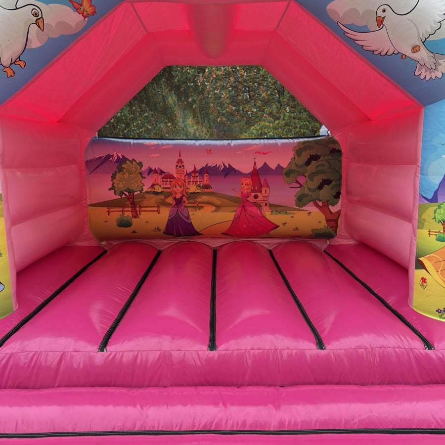 At only 9.5ft high our Princess Bouncy Castle offers itself to both Indoor and Outdoor events