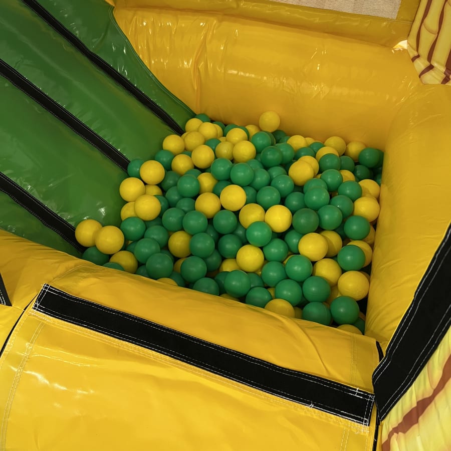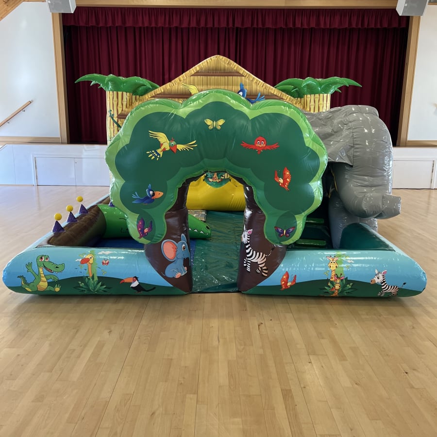 Including a fully enclosed play area, netted bouncing area, elephant 3ft platform slide, 6 air jugglers and finishing with a small slide into a ball pit this Inflatable really does have it all!