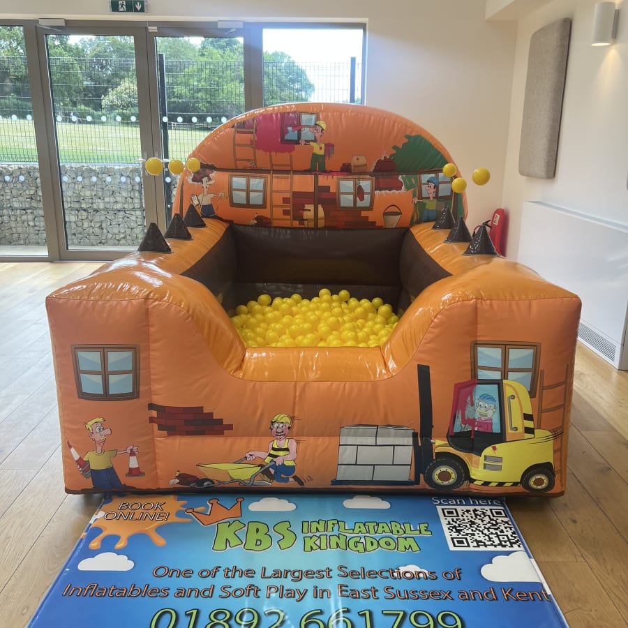 Book our Construction Air Juggler Ball Pit now by clicking the Green "Book Online" Button at the top of this page, alternatively you can call our office on 01892 661799 and we will be more than happy to help you