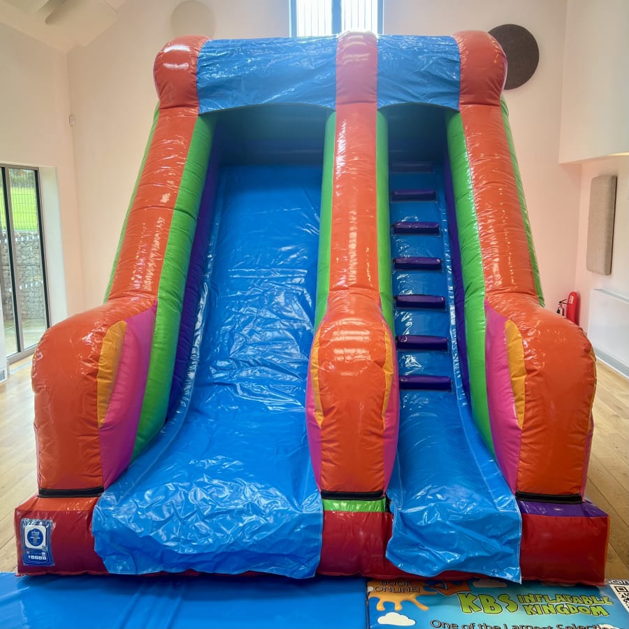 Our Brand New 8ft Platform Multi-Coloured Slide is designed to deliver a fun, eye-catching, and thrilling experience. At over 12ft tall and featuring a bright and colourful multi coloured design, this Inflatable Slide is guaranteed to be one of the stand out attractions at any party.