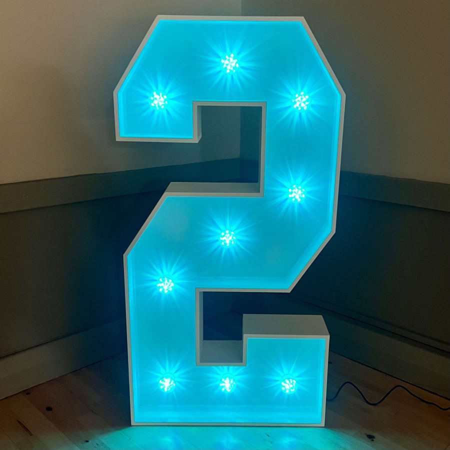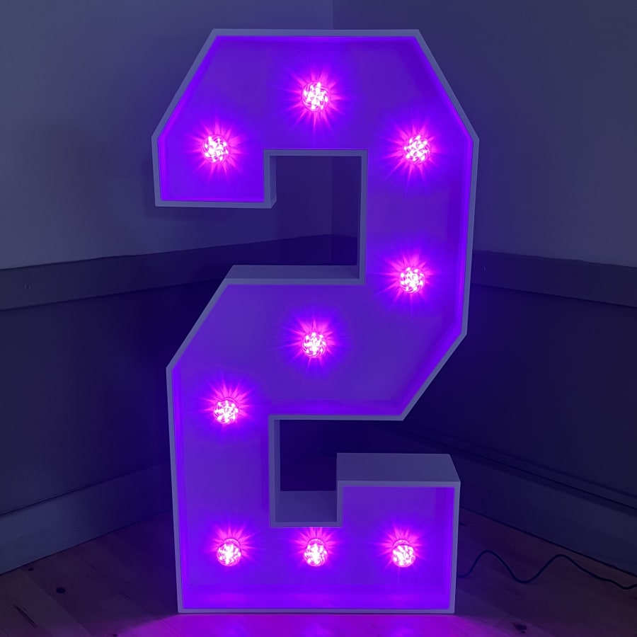 Our Light-Up LED Number 2 will also work alongside any of our other Light-Up Numbers to make bespoke ages or maybe your planning for that landmark 21st Birthday celebration.