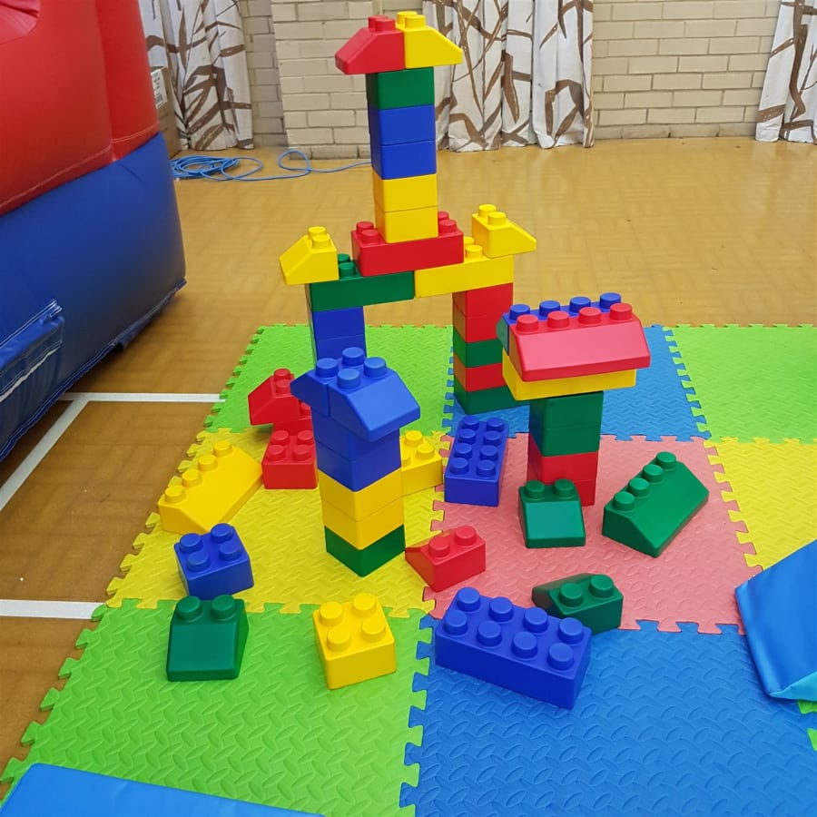 Includes: 15 Piece Soft Play Set / 7 Piece Soft Play House Set / 50 Giant Lego Blocks / Soft Play Stacking Lego Character