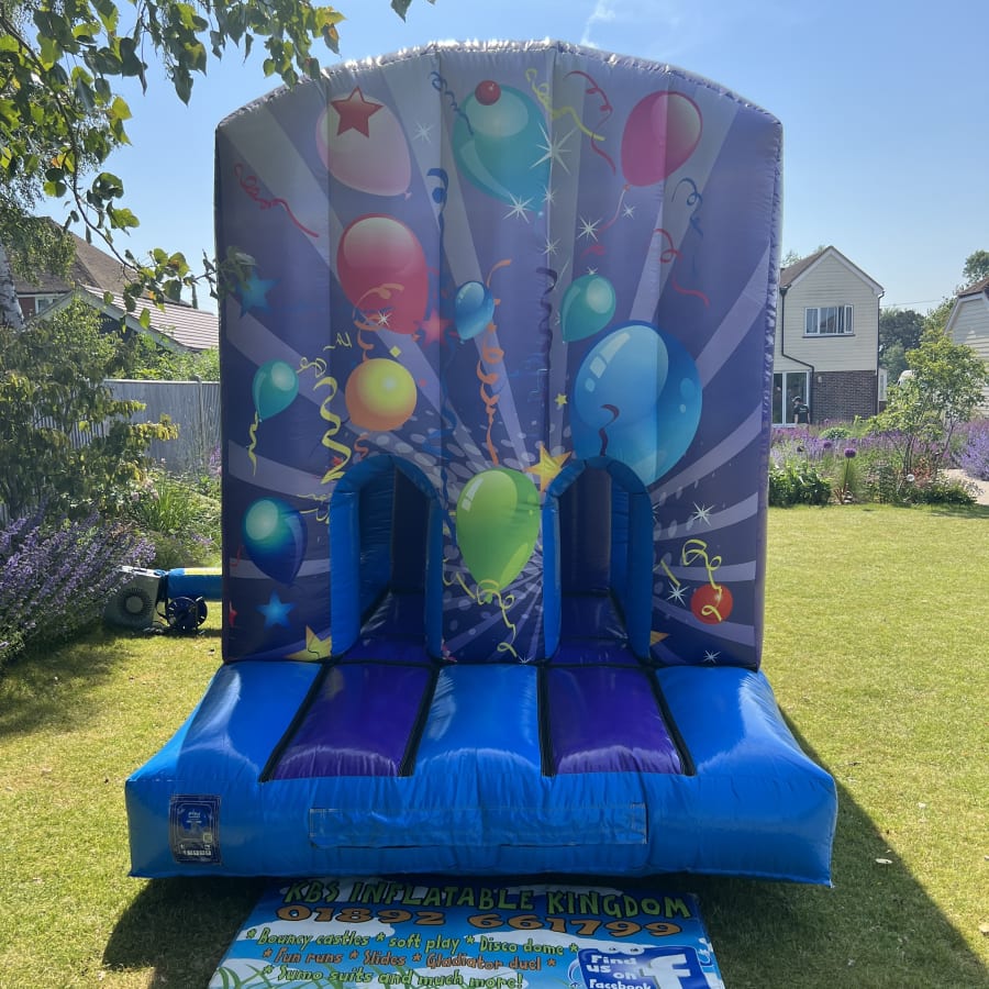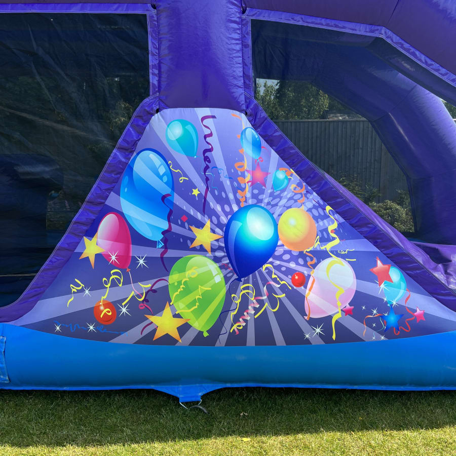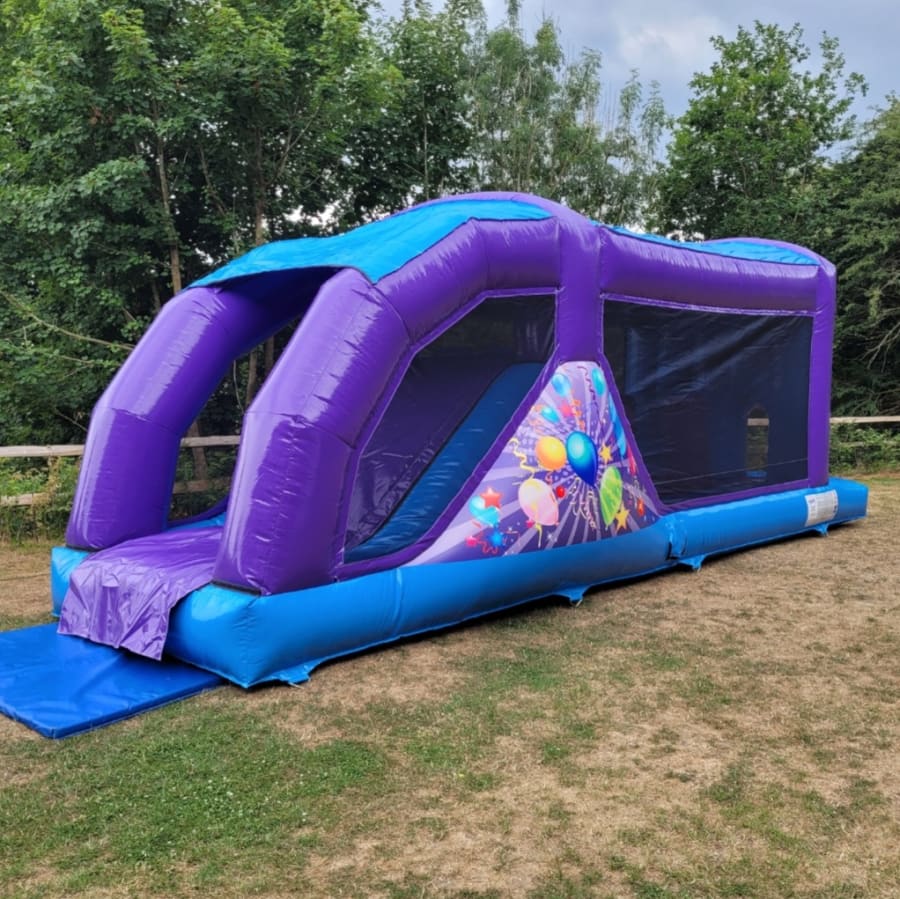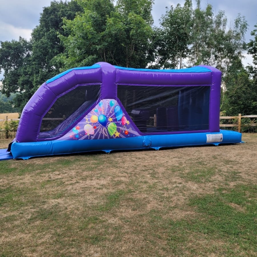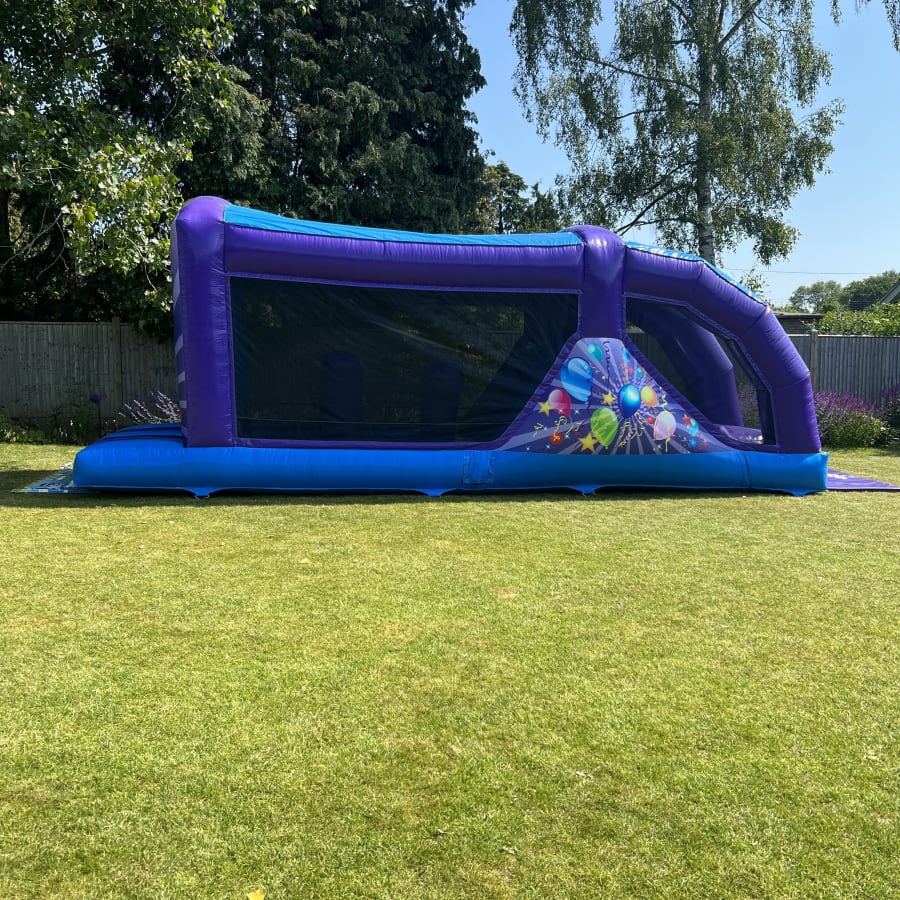 The Party Fun Run is a 30ft long inflatable designed for non-stop fun. This Party theme assault course combines a bouncing area, three dynamic obstacles and a 7ft platform slide. It delivers an adrenaline filled experience for children of all ages.