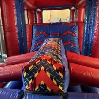 In a striking red and blue design, the 42ft Ninja Run Assault Course is an adrenaline filled, action packed centrepiece perfect for any event. Filled from end to end with dynamic obstacles, warrior wall climb and finishing with a 6ft platform slide, this Ninja course tests agility, speed and warrior spirit. Perfect for school fetes, garden parties, village fun days and corporate events.