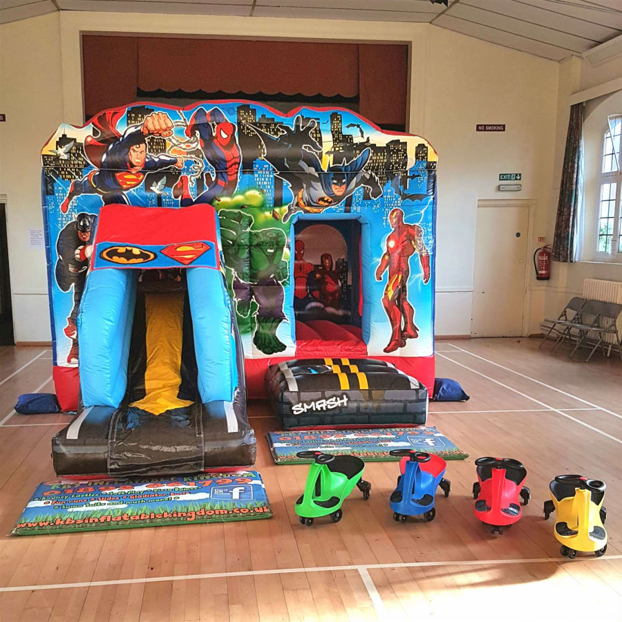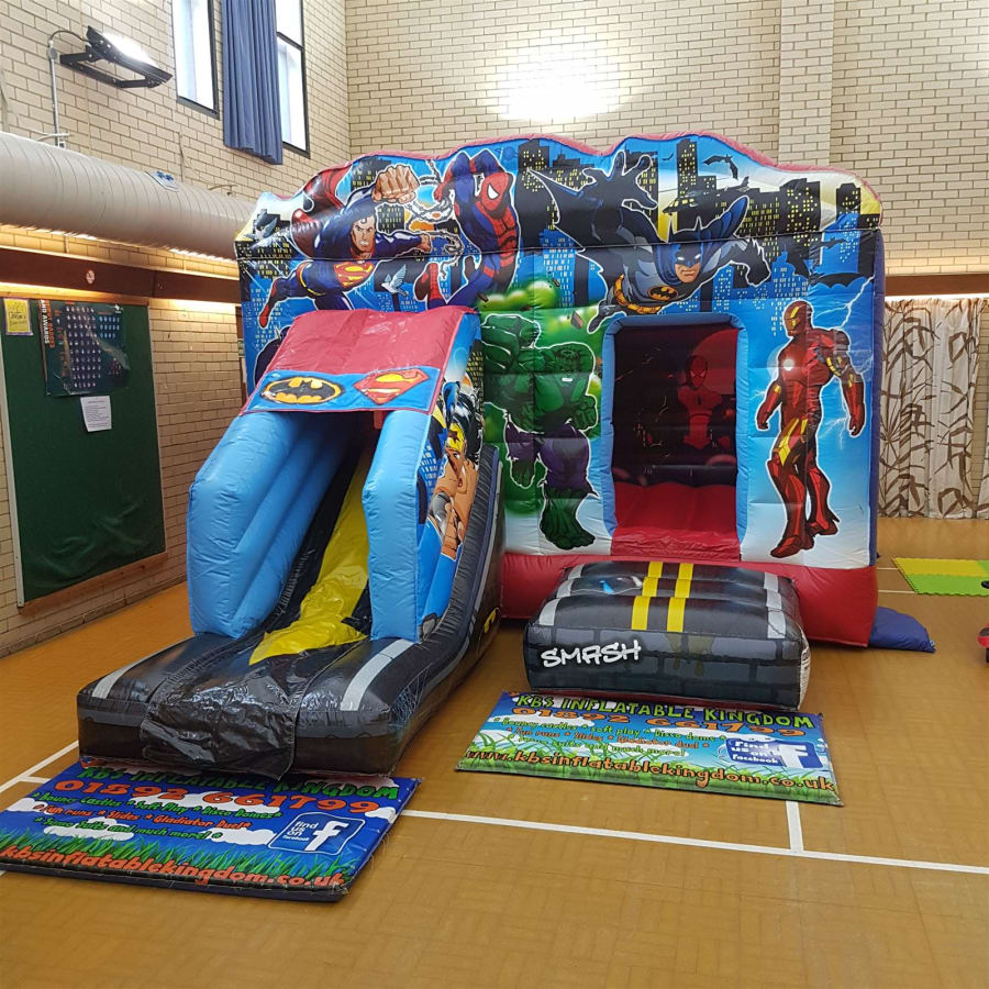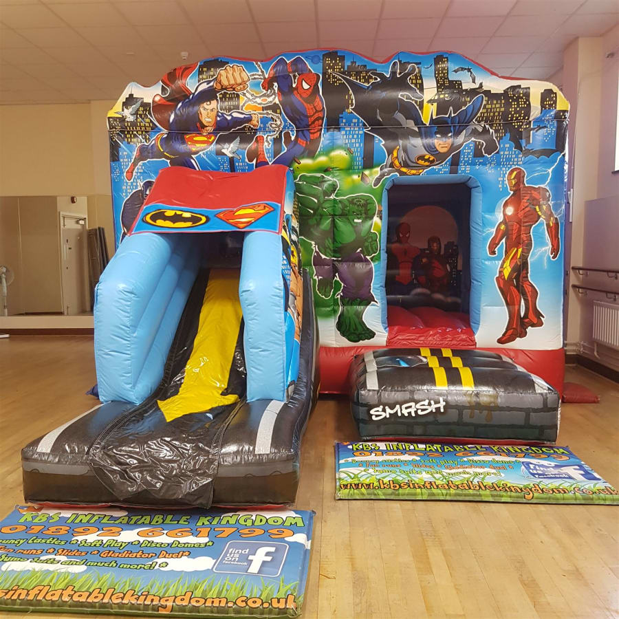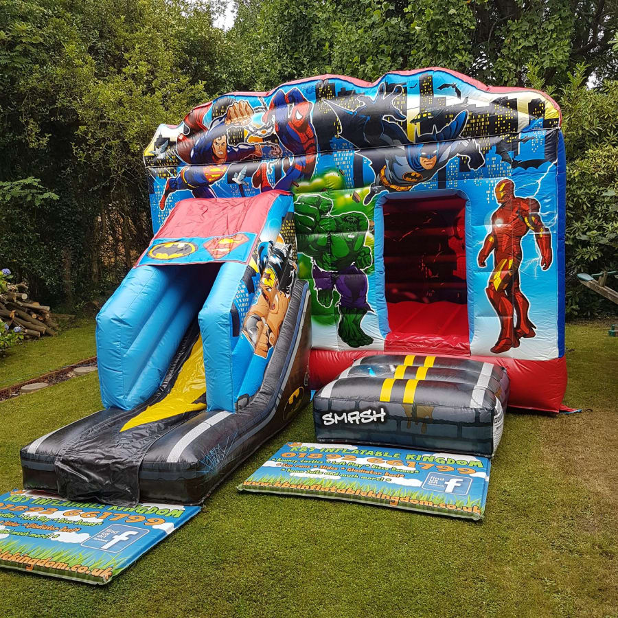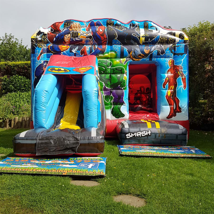 Book the 13ft x 18ft Superhero Bounce and Slide now by clicking the Green "Book Online" Button at the top of this page, alternatively you can call our office on 01892 661799 and we will be more than happy to help you