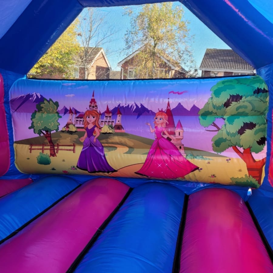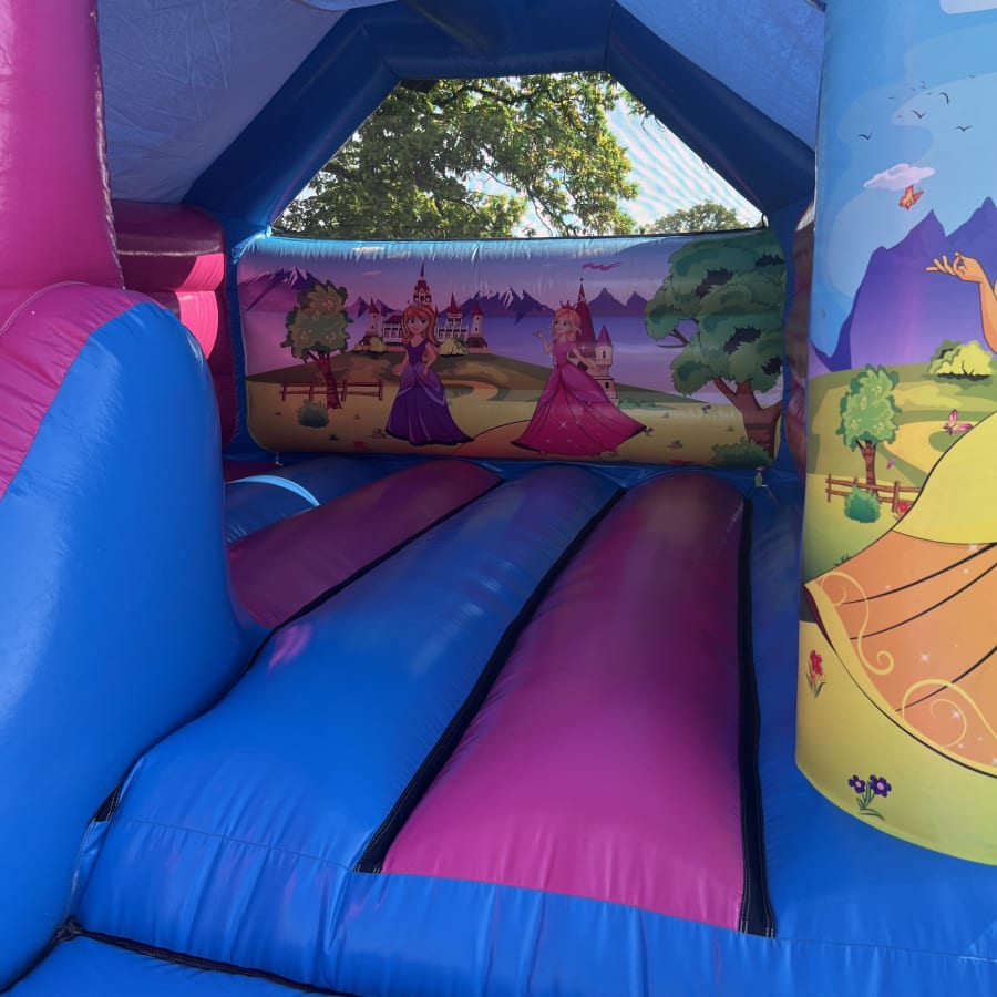Includes: 13ft x 13ft Princess Bouncy Castle / Princess 17 Piece Soft Play Set / Princess Soft Play Rocker / Princess Soft Play Stacker / Princess Ball Pit