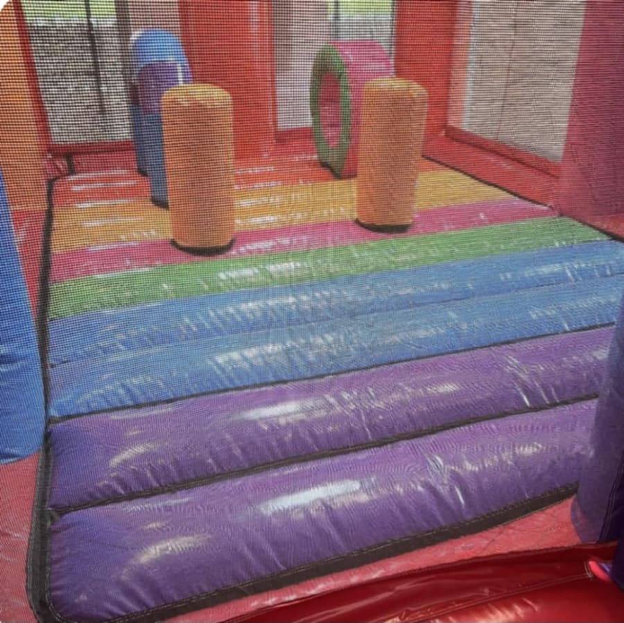 The Multi Coloured Party Activity Bouncy Castle is guaranteed to deliver high-energy entertainment for any celebration. This brand new, top of the range inflatable has not one but TWO Slides! Ensuring faster turns for the children and double the fun!. Its Bright and vibrant colours and outstanding party theme artwork will stand out at any celebration.