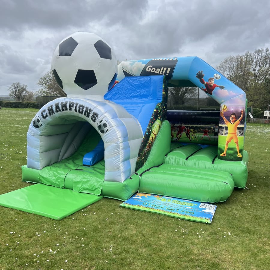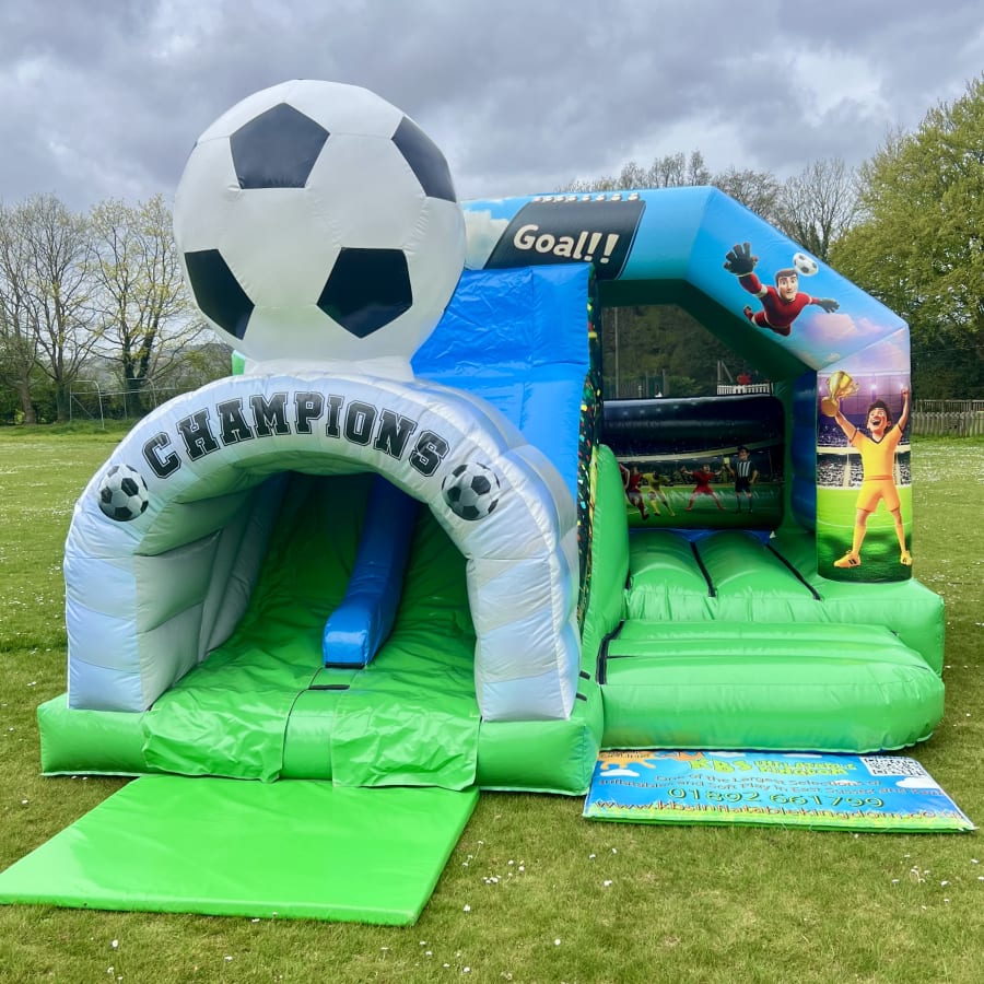 Book the Football 3D Twin Lane Bounce and Slide now by clicking the Green "Book Online" Button at the top of this page, alternatively you can call our office on 01892 661799 and we will be more than happy to help you