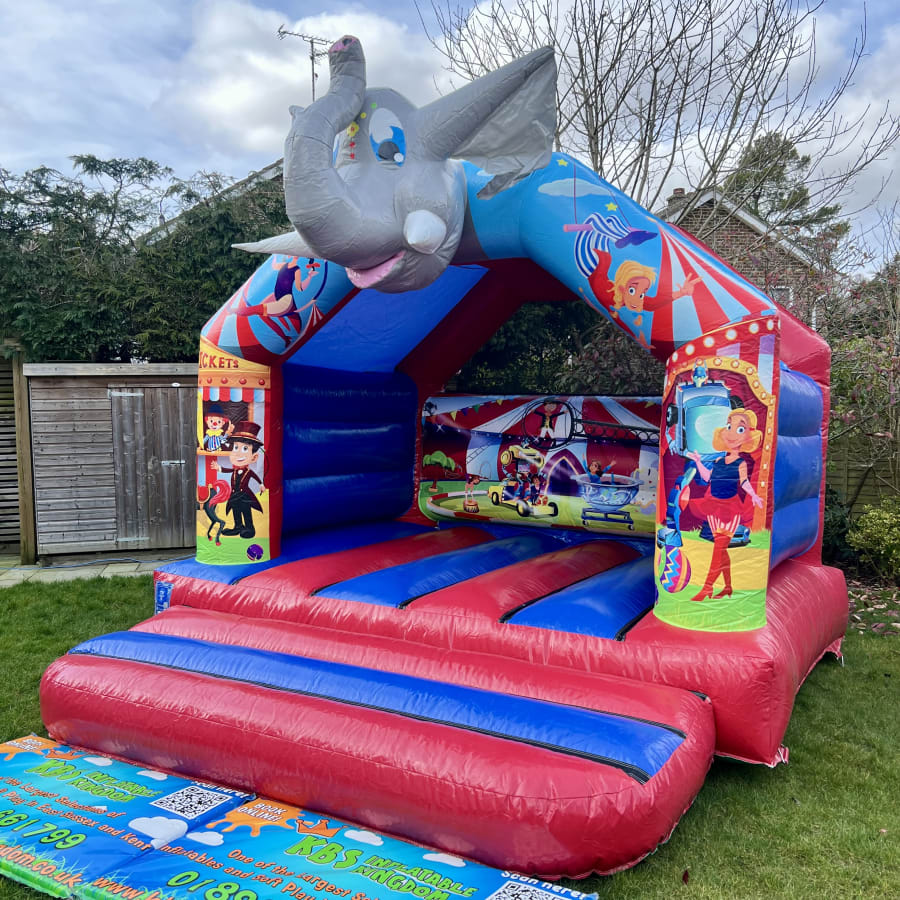 Measuring a generous 13ft x 13ft, this vibrant bouncy castle will be the centrepiece of any event, captivating both children and adults alike. With its stunning red and blue design and large 3d Elephants head, it will certainly help to bring the magic of the circus to your special event.