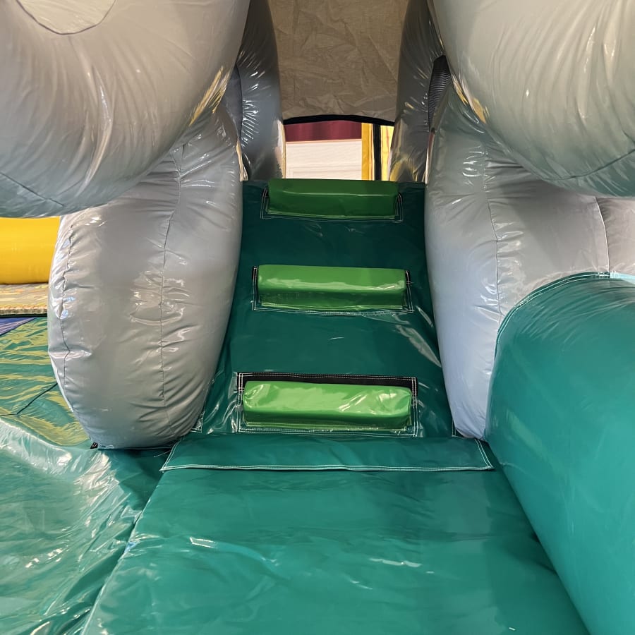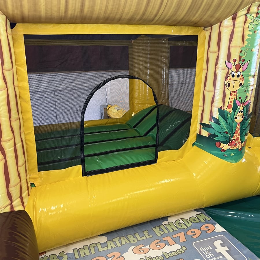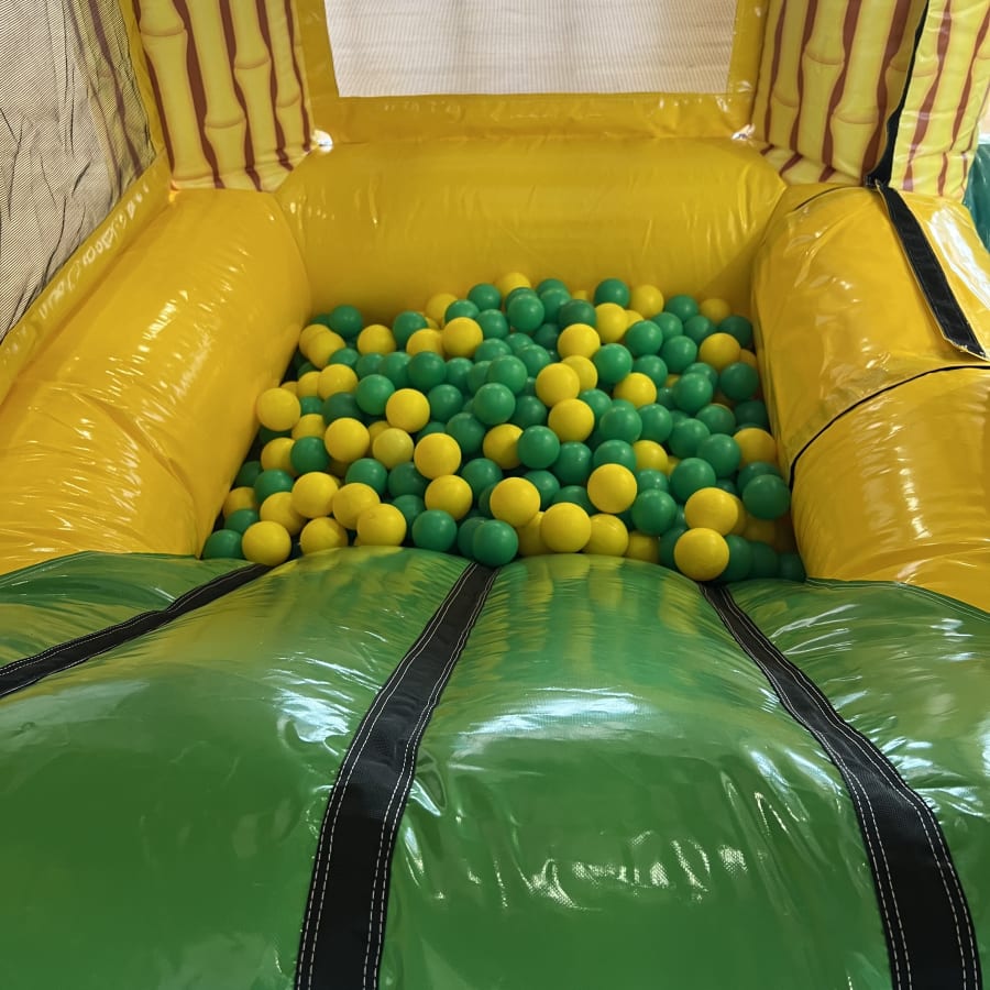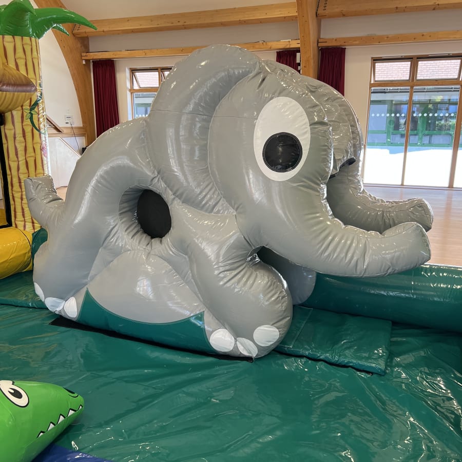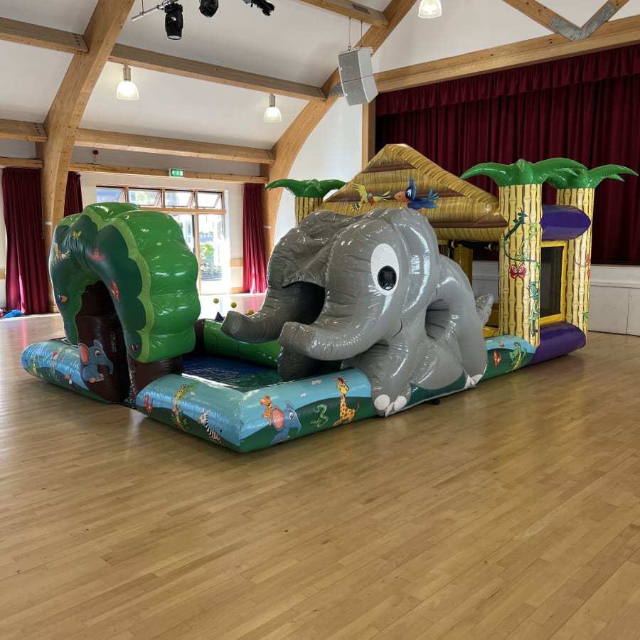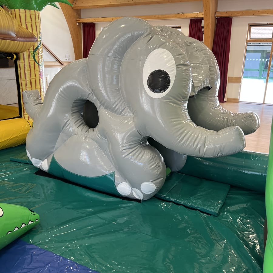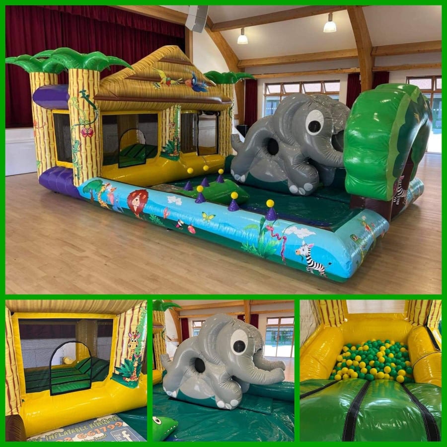 Including a fully enclosed play area, netted bouncing area, elephant 3ft platform slide, 6 air jugglers and finishing with a small slide into a ball pit this Inflatable really does have it all!