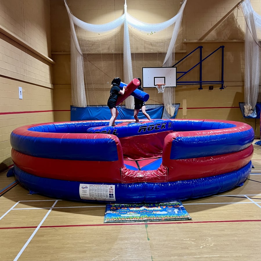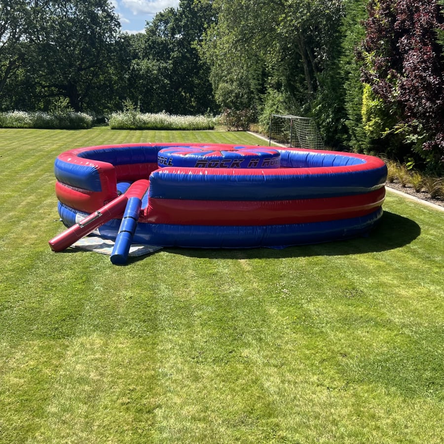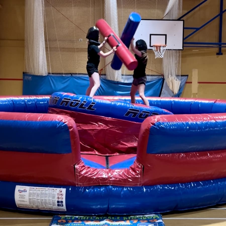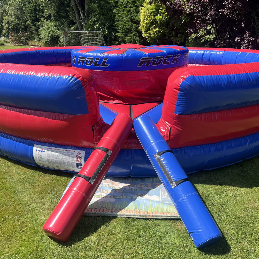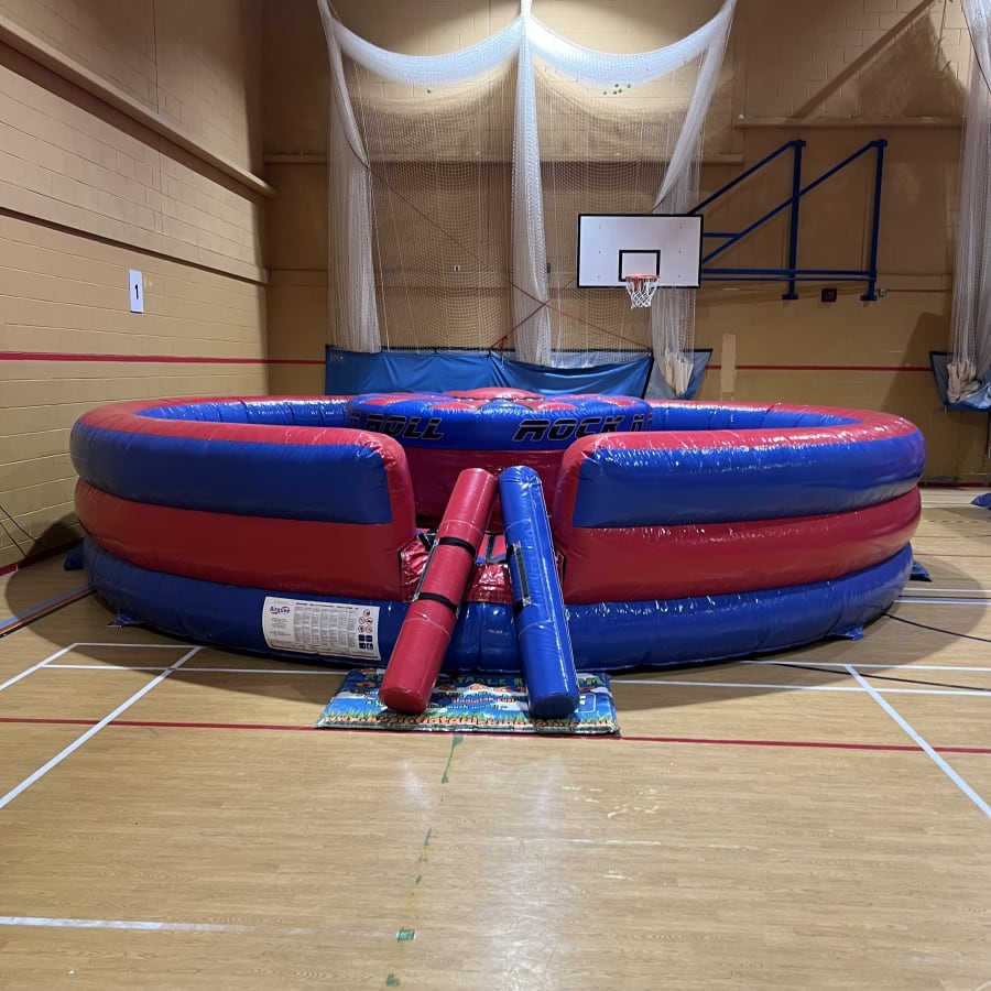 Our Rock N Roll Gladiator Duel is designed with safety in mind, featuring a soft inflatable surface and padded jousting sticks to ensure a fun and secure experience for all participants. With its vibrant colours and sturdy construction, this game will add a touch of excitement to any occasion.