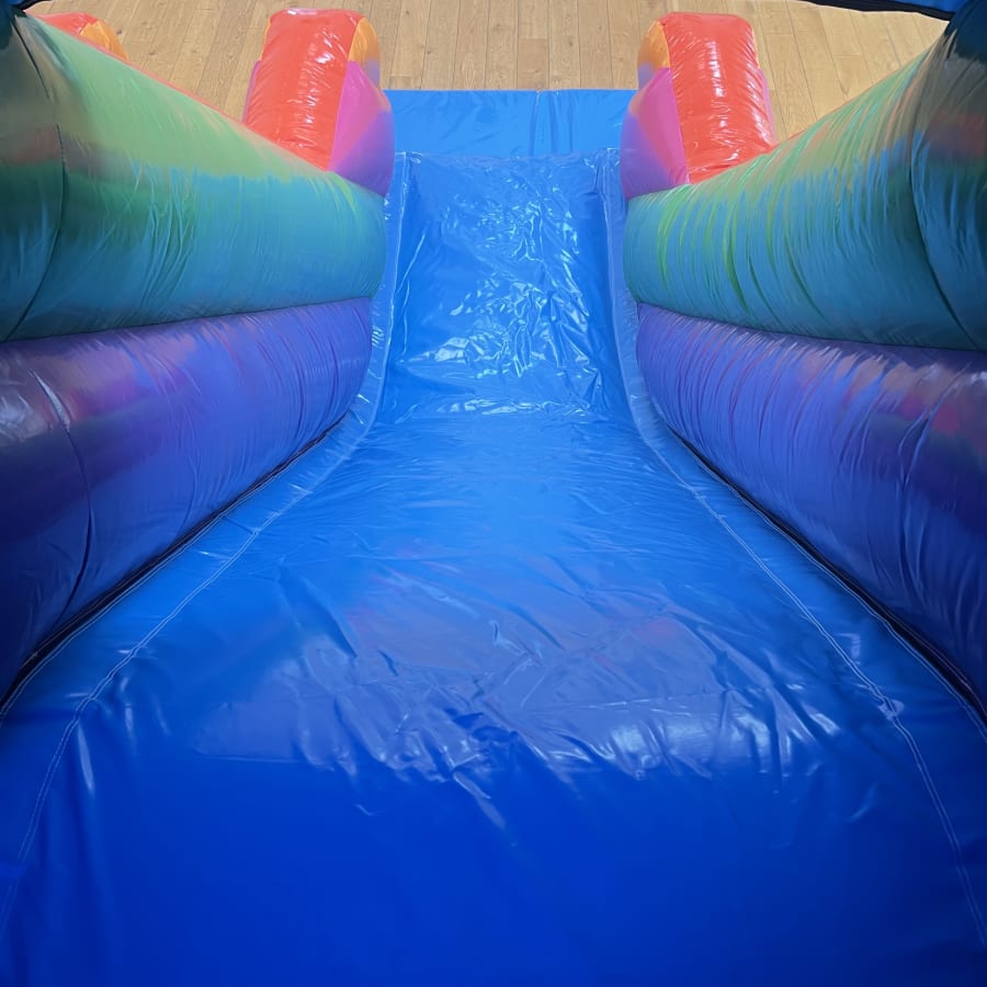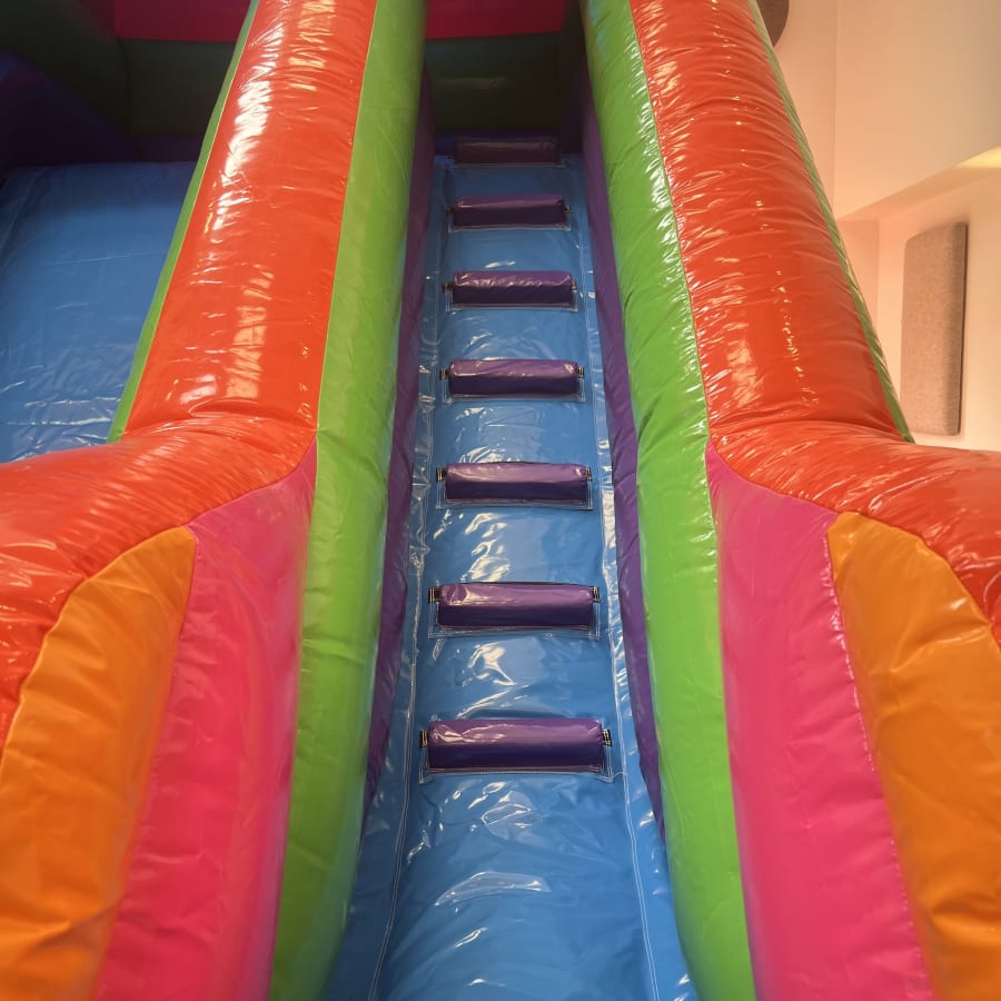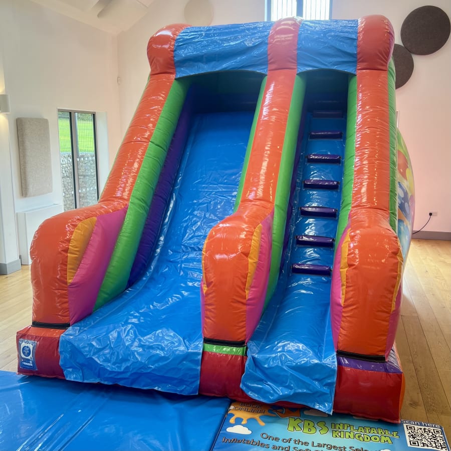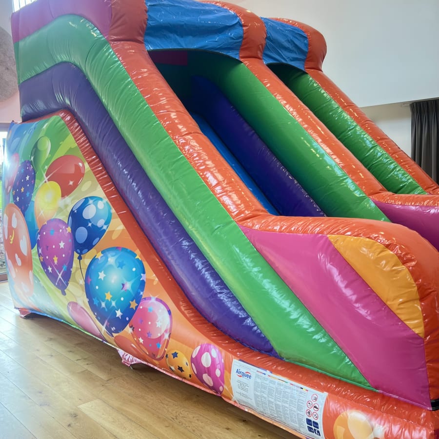 Our Brand New 8ft Platform Multi-Coloured Slide is designed to deliver a fun, eye-catching, and thrilling experience. At over 12ft tall and featuring a bright and colourful multi coloured design, this Inflatable Slide is guaranteed to be one of the stand out attractions at any party.