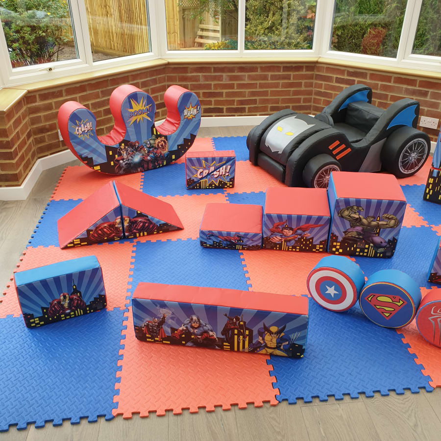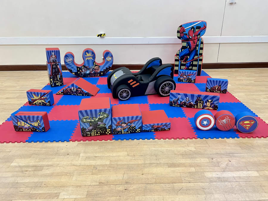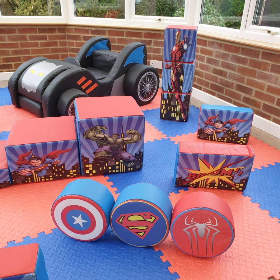 Our Superhero Soft Play will be a huge success at any Superhero party and even comes with its very own Soft Play Bat Car.