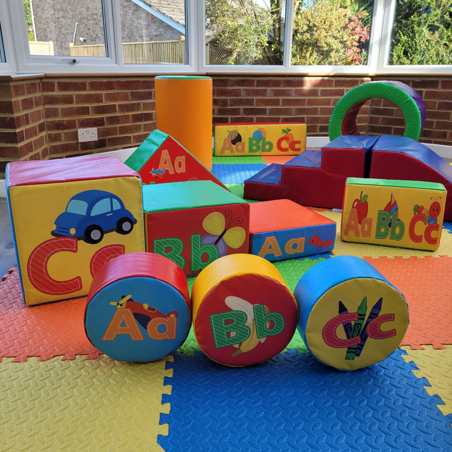 The soft play items in this package combine alphabet themed shapes with basic obstacle style pieces to help with coordination and encourage imaginative play.