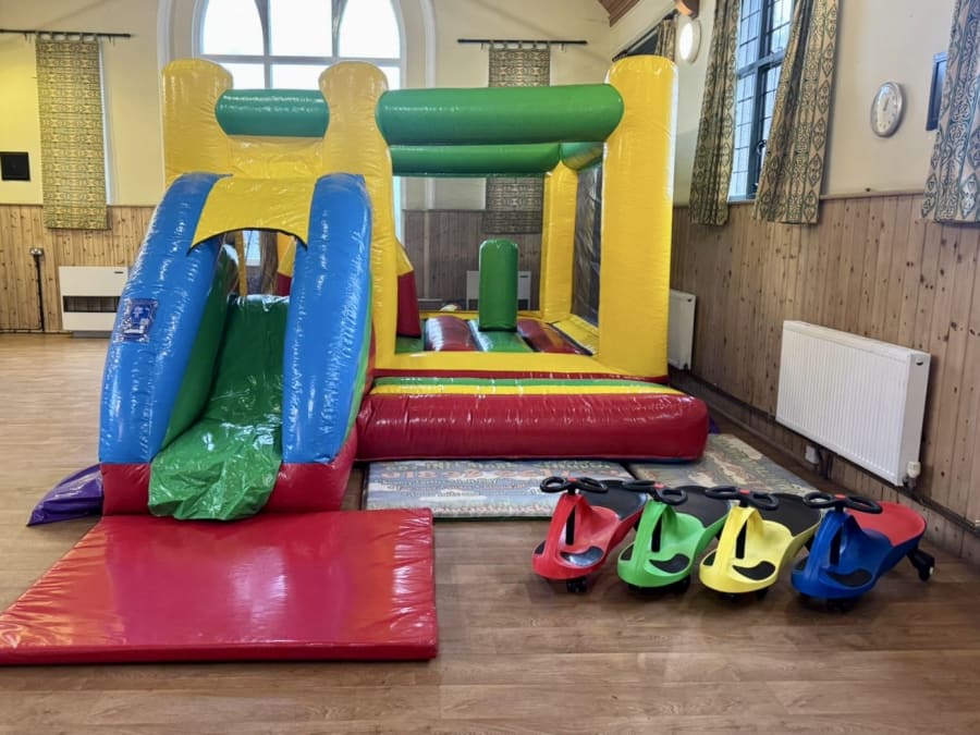 The hall can cater for a wide range of our products and can accommodate all our our Childrens Bouncy Castles and Bounce and Slides although the hall can unfortunately NOT fit Inflatables with a side slide.