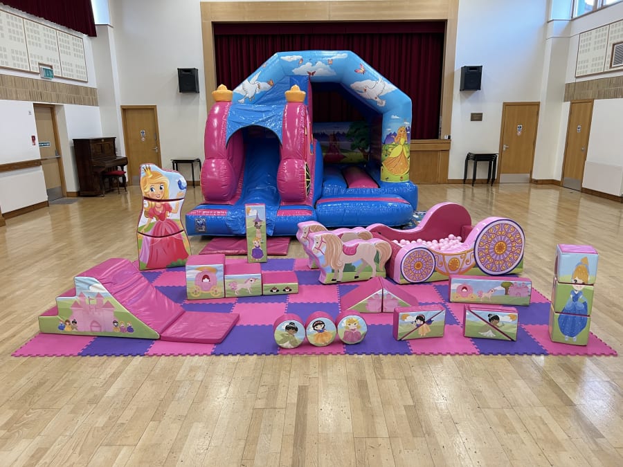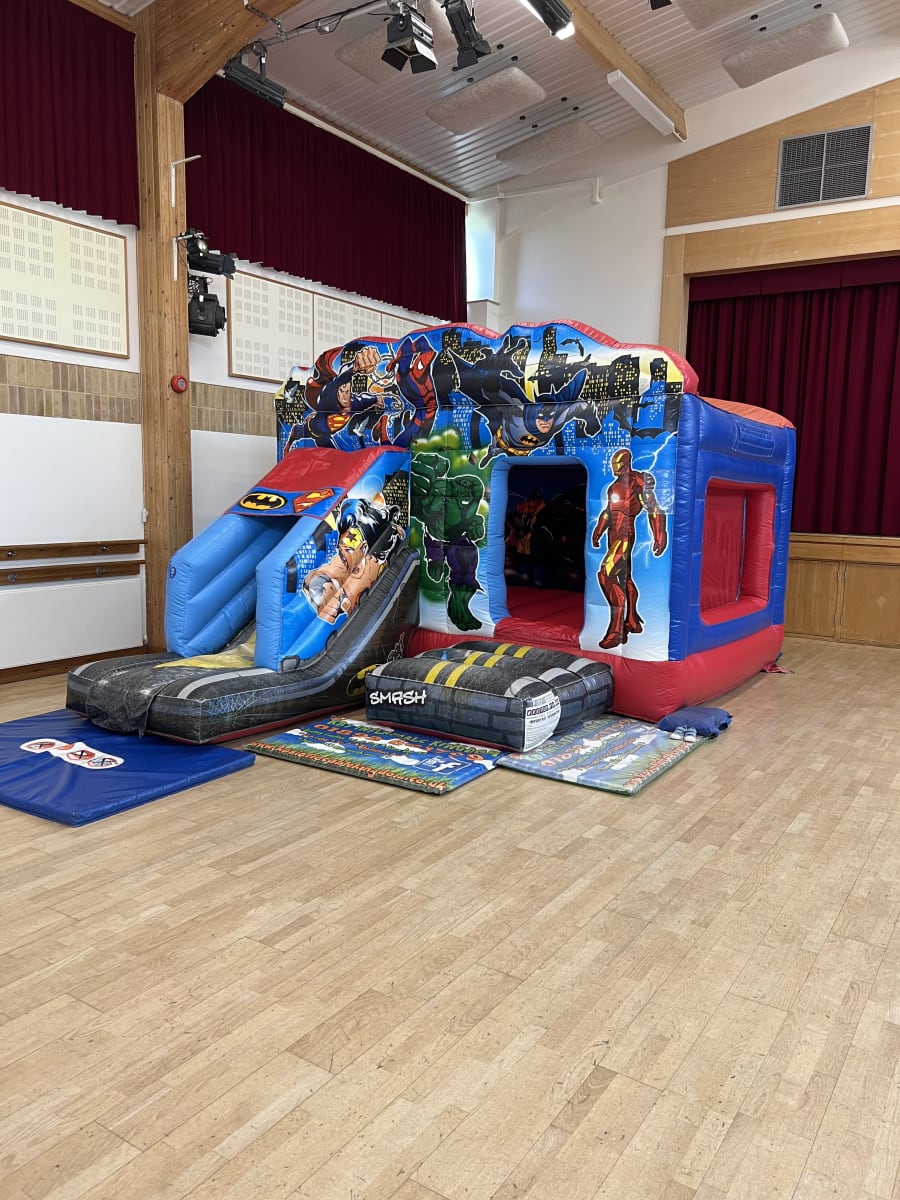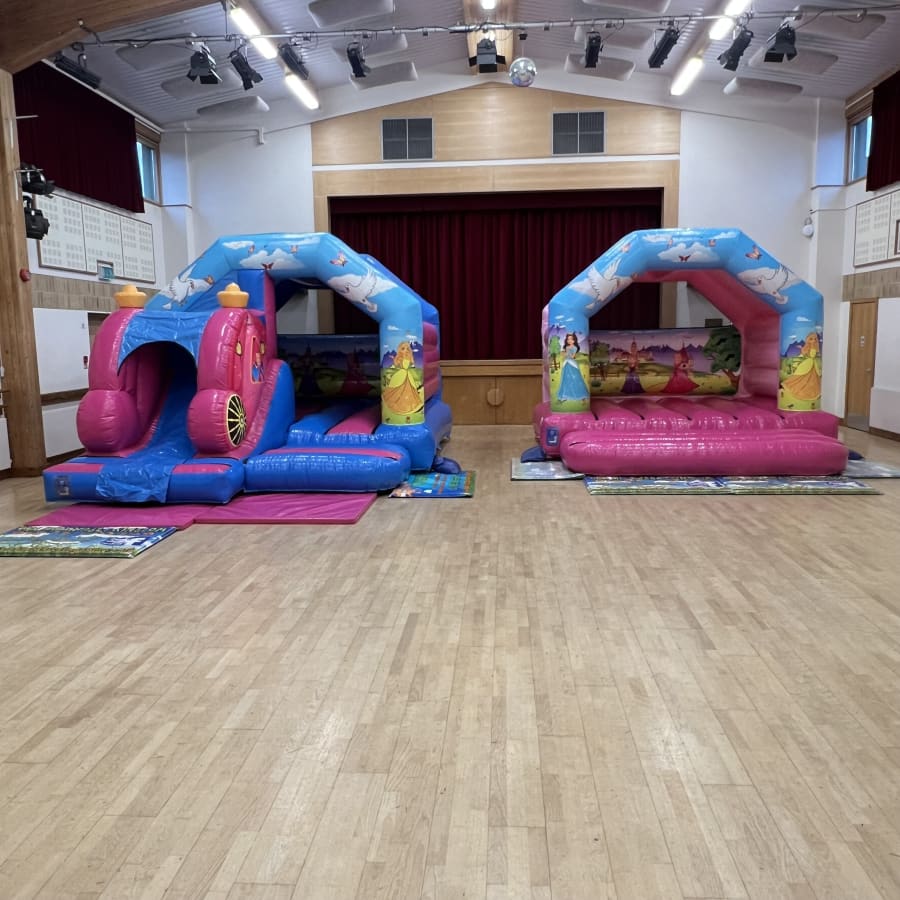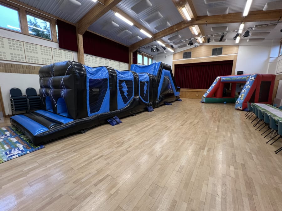 Pembury Village Hall has a very large main hall 16 x 12m - (52ft x 39ft) and can easily fit any of our Bouncy Castles, Disco Domes and Assault Courses up to 42ft long