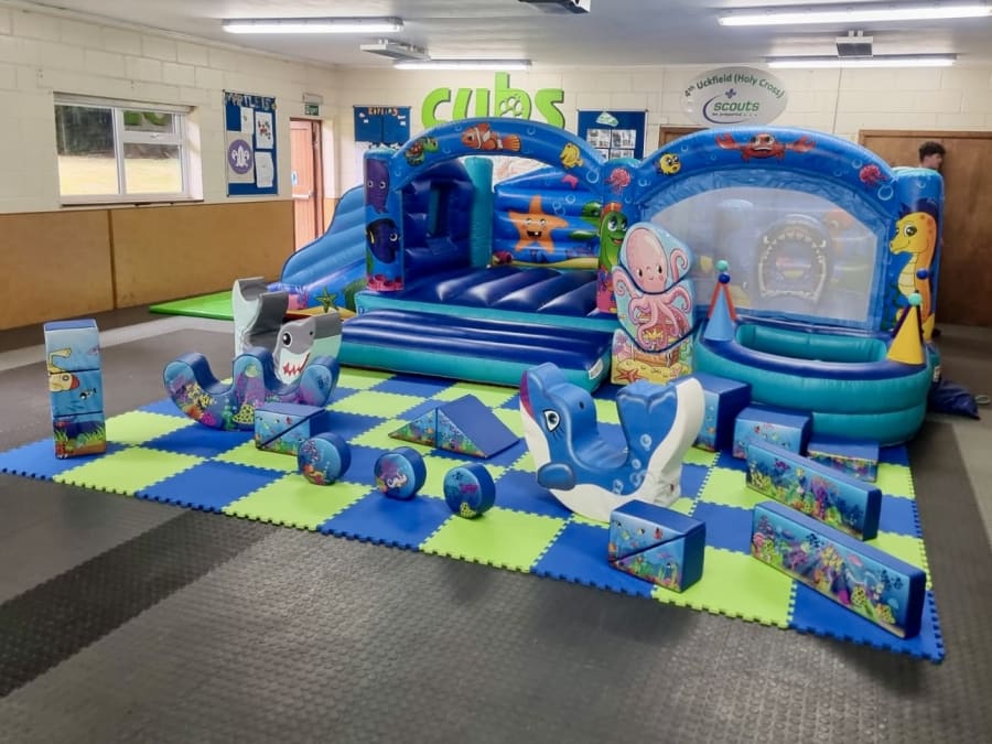 Inflatables can be used outside on the large grassed area during the summer months