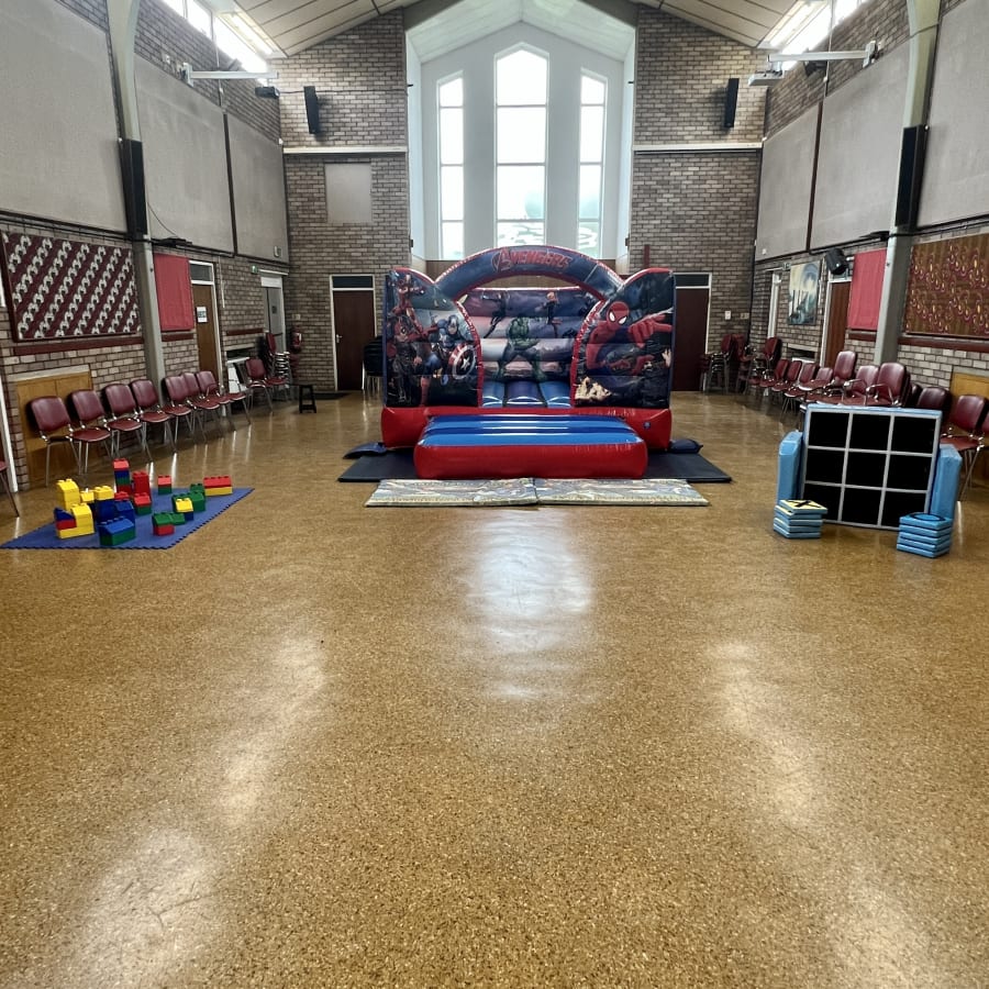 The large main hall is a very good size and can easily cater for a wide range of our products. All of our Bouncy Castles, Bounce and Slides, Soft Play Packages and Disco Domes will fit inside this venue as well as Assault Courses up to 30ft long.