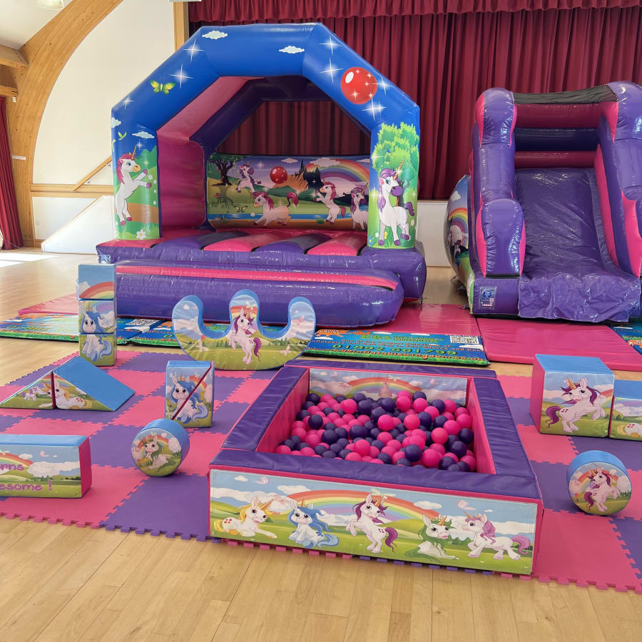 Including our Unicorn Bouncy Castle, Unicorn themed 5ft Platform Slide and Unicorn Soft Play and Ball Pit set this package really does have it all and will provide the most ULTIMATE Unicorn experience.