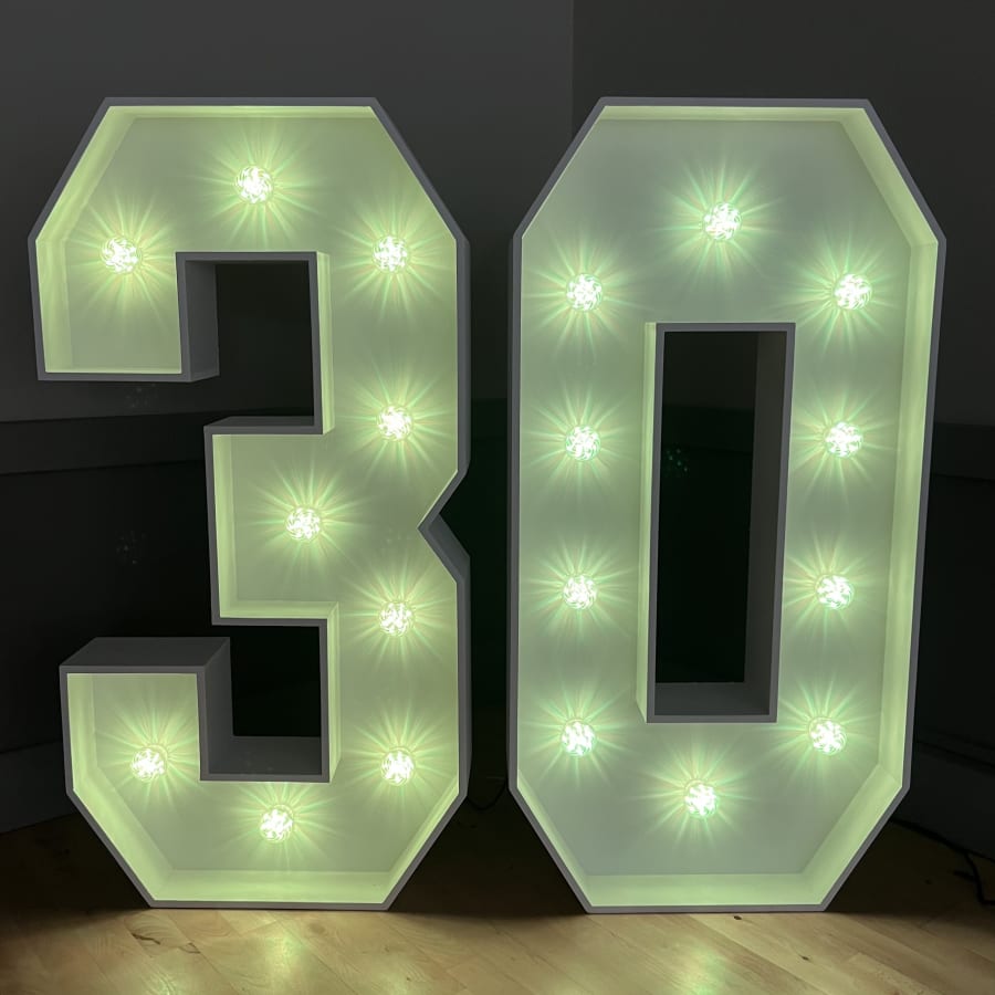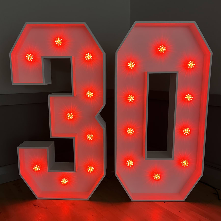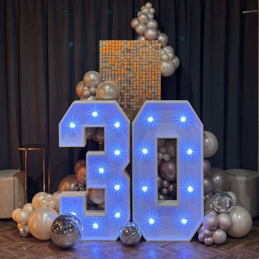 A 30th birthday is a significant milestone in an adult life and what better way to celebrate than with a huge party! Our Light-Up LED Numbers 3 and 0 will add a touch of magic and excitement to any 30th Birthday Celebrations.