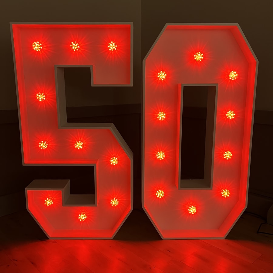 A 50th birthday is a significant milestone in an adult life and what better way to celebrate than with a huge party! Our Light-Up LED Numbers 5 and 0 will add a touch of magic and excitement to any 50th Birthday Celebrations.