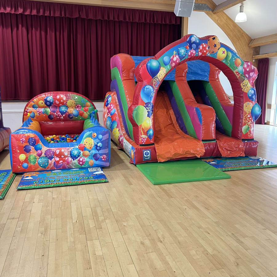 Book our Multi Coloured Party Bouncy Castle + 5ft Platform Slide + Air Juggler Ball Pit Package now by clicking the Green "Book Online" Button at the top of this page, alternatively you can call our office on 01892 661799 and we will be more than happy to help you
