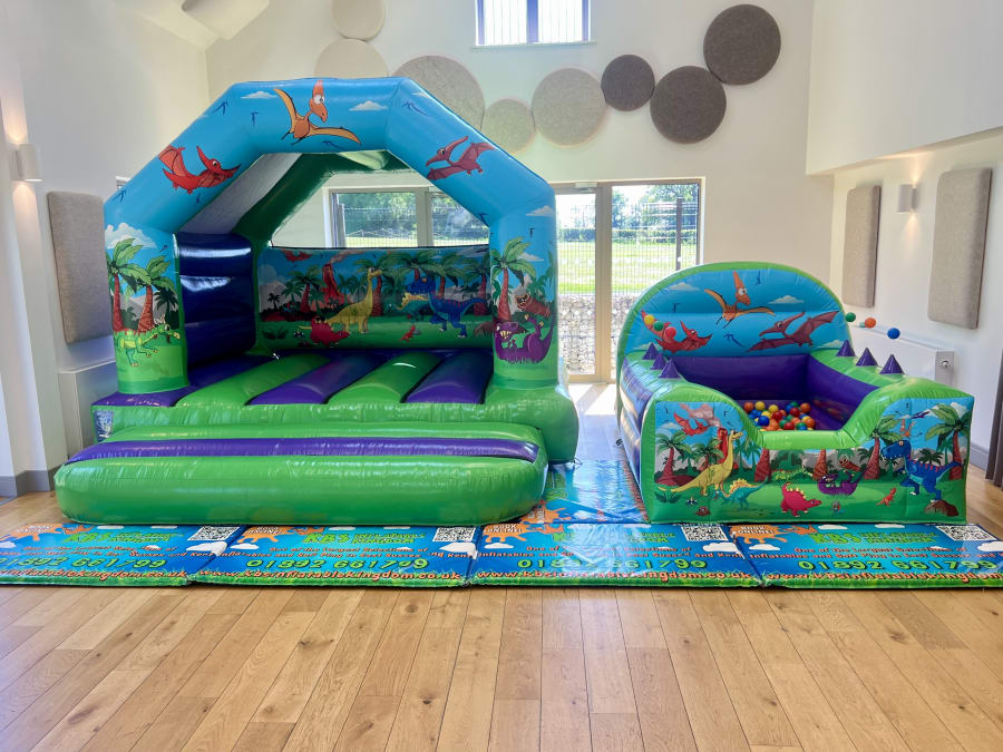 Dinosaur Bouncy Castle and Air Juggler Ball Pit Package