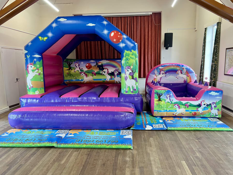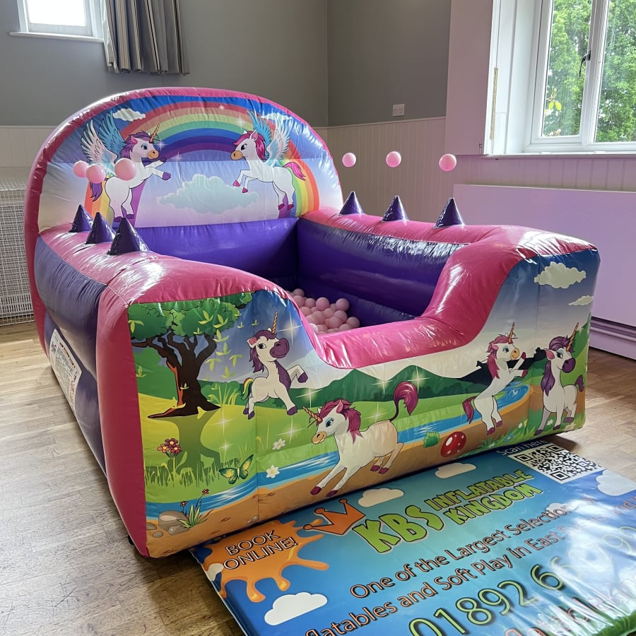 Book the Unicorn Bouncy Castle + Unicorn Air Juggler Ball Pit now by clicking the Green "Book Online" Button at the top of this page, alternatively you can call our office on 01892 661799 and we will be more than happy to help you