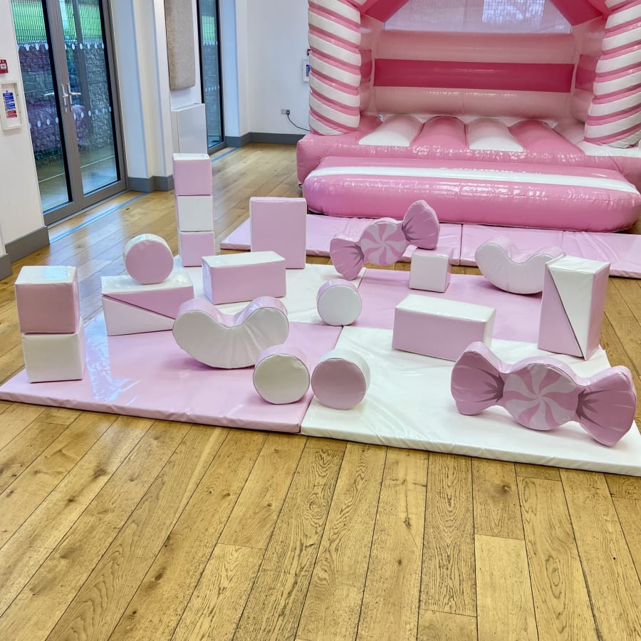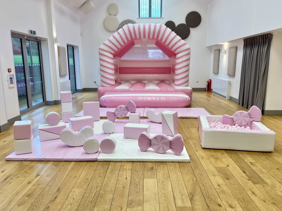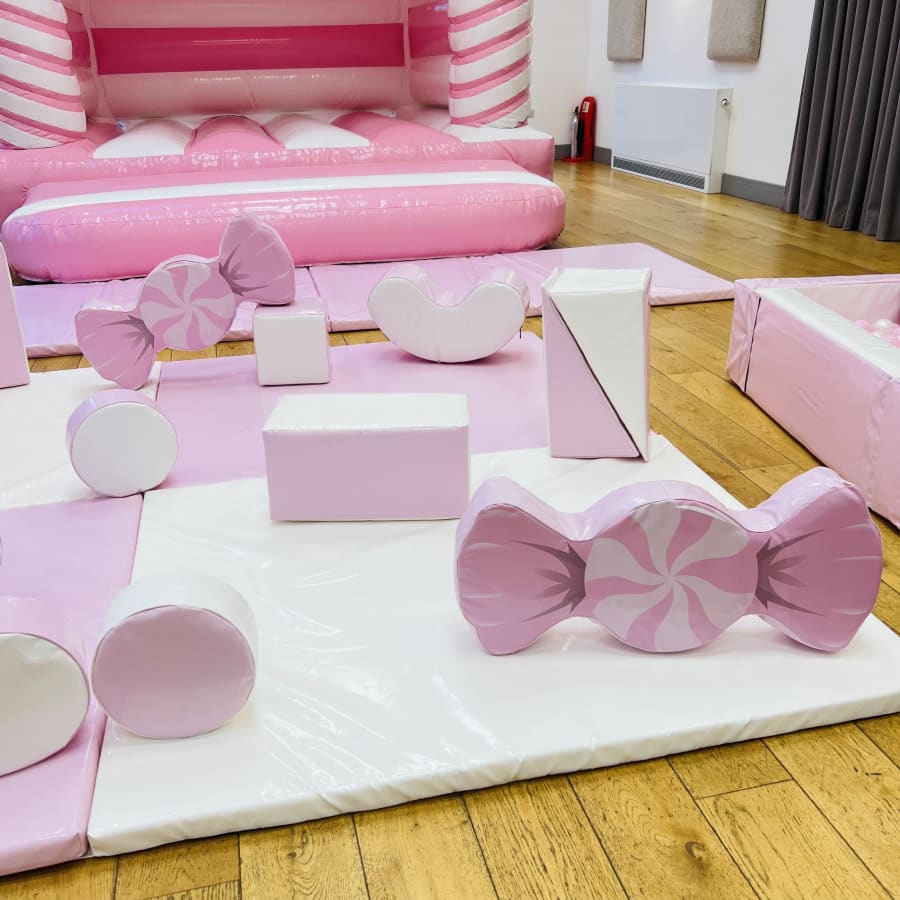 Pink and White Bouncy Castle and Pink Candy Soft Play Package