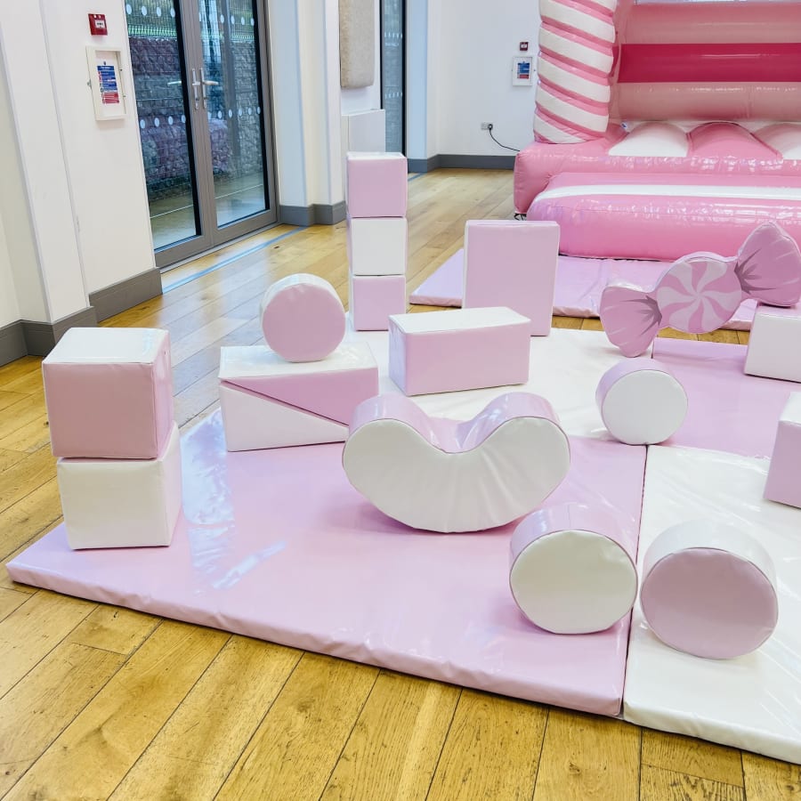 Planning a candy theme birthday party? Look no further! This stunning package blends a pink and white colour scheme with three delightful pink candy soft play shapes. This package is crafted for visual impact, safe play and memorable photo ops, ideal for 1st, 2nd or 3rd birthday parties.