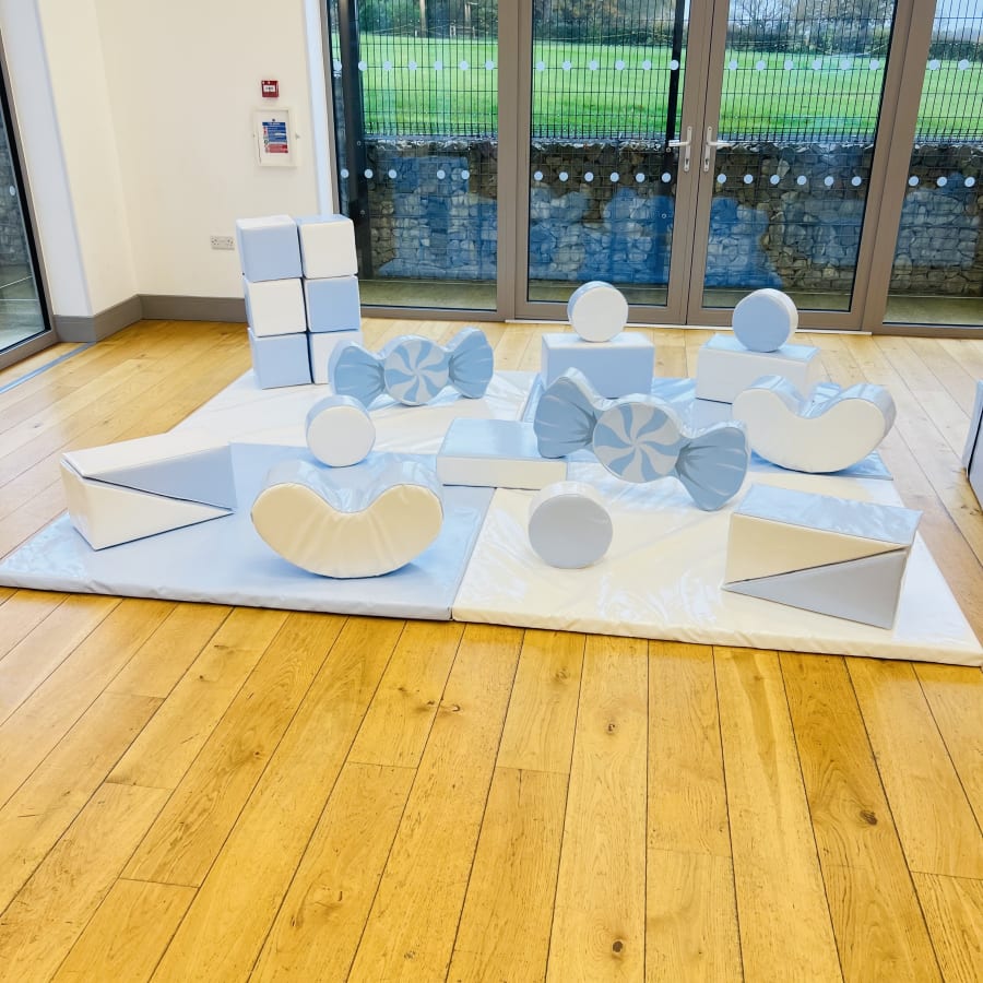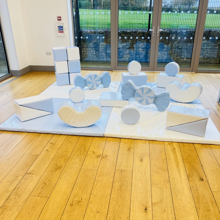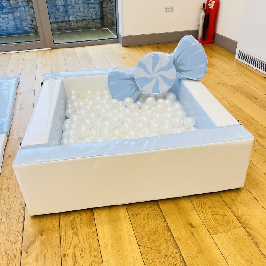 Delightful, cute and insta worthy. The Blue Candy Sweets Soft Play and Ball Pit Package is a pastel blue and white colour scheme dream, ideal for 1st, 2nd and 3rd birthday ideas.