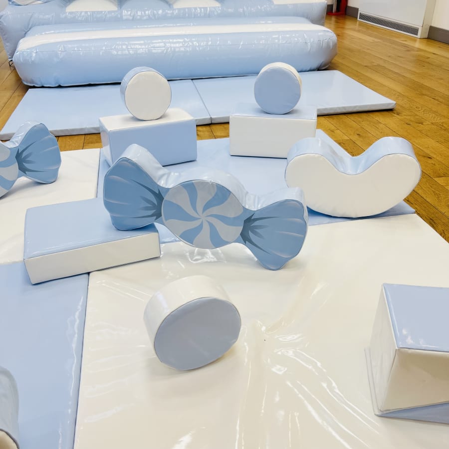 This soft play package blends cute candy sweets soft play shapes with a blue and white palette for an inviting, safe, and highly photogenic setup. Ideal for toddlers and young children, it will turn any venue into a cosy play zone.